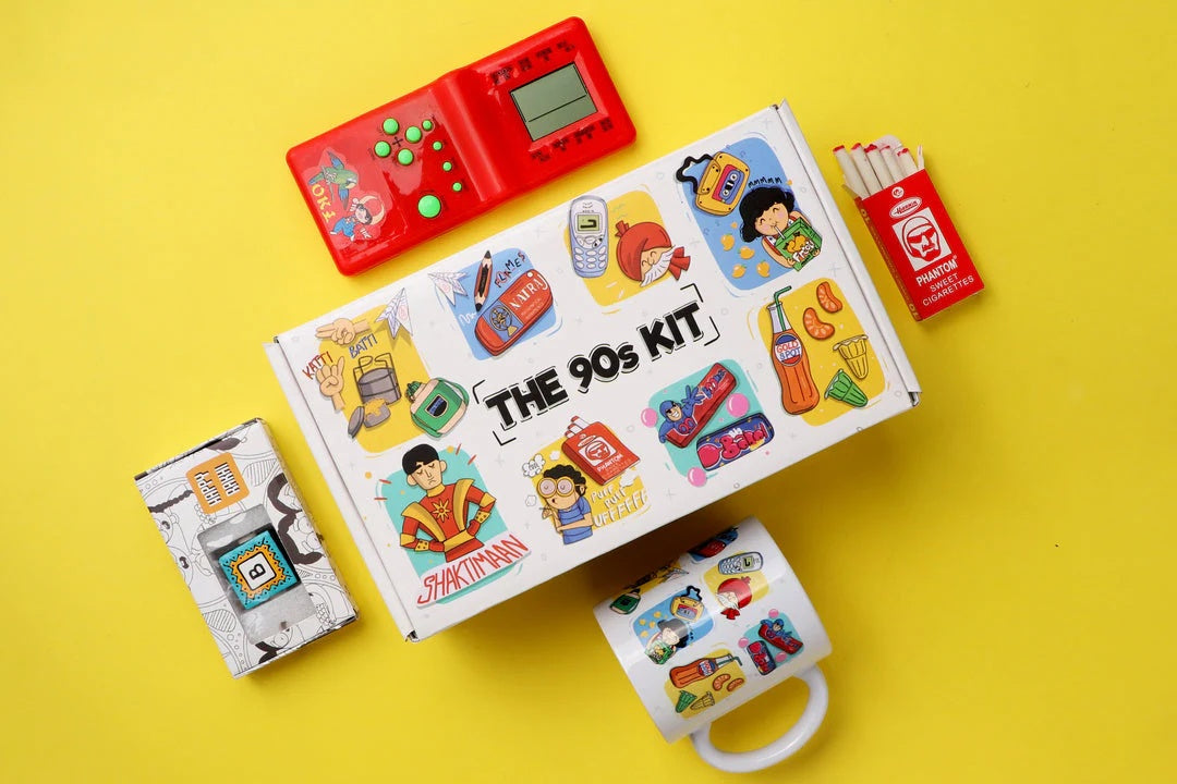 Every 90s kid is obsessed with nostalgia and will always have a soft corner for memories of Shaktiman, gully cricket, cartoon network, and cotton candy. And when it's Raksha Bandhan, you can never go wrong with a rakhi that comes with all the fun things from the 90s. Gift someone this time machine and take him/her back to their childhood. This handcrafted box includes: