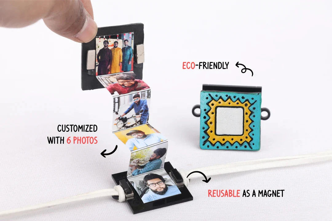 The box also includes a handcrafted terracotta rakhi that is customised with a picture. The back of this photo Rakhi has been made magnetic. After Raksha Bandhan is over, you can simply remove the thread and reuse it as a fridge magnet so your sibling never has to throw the rakhi away.