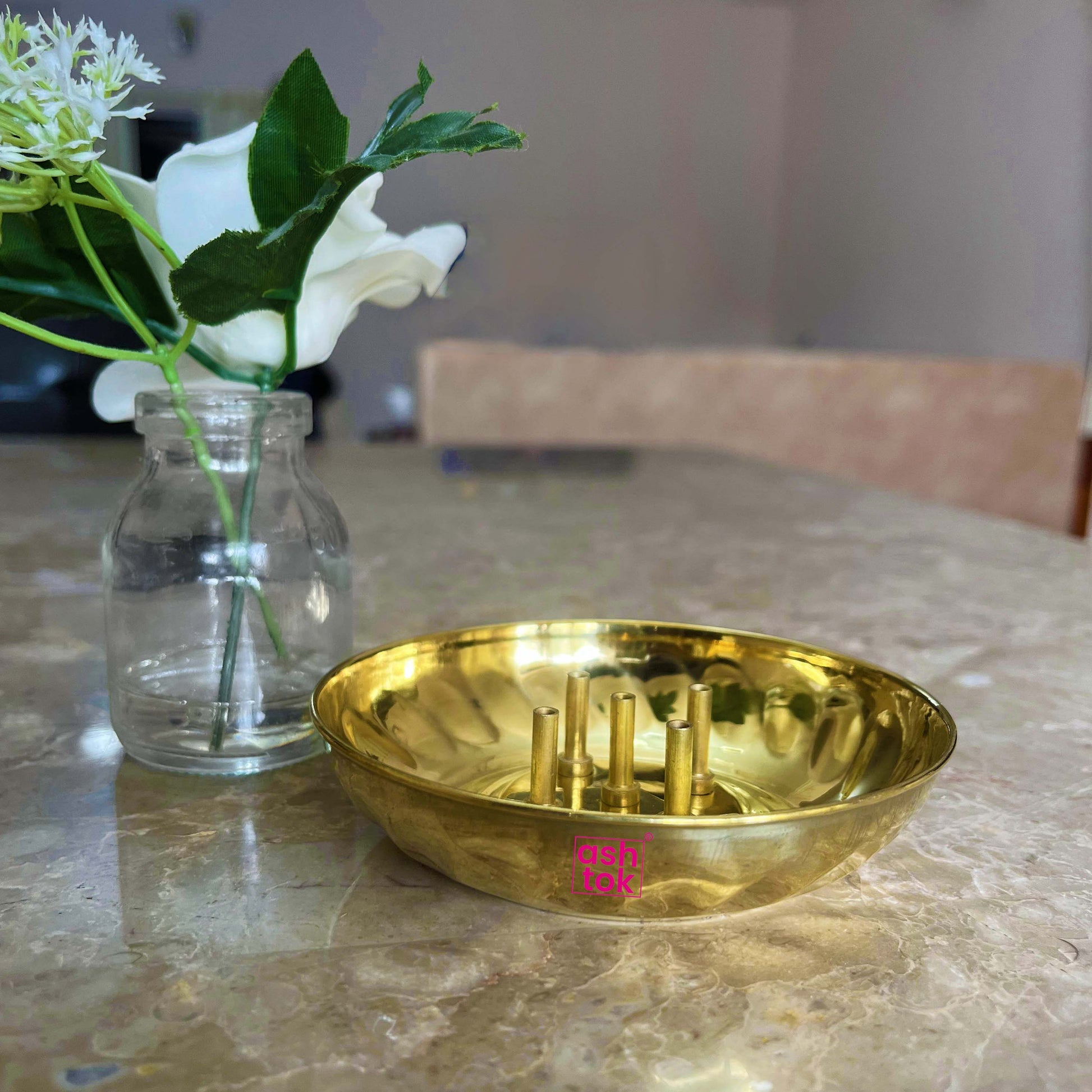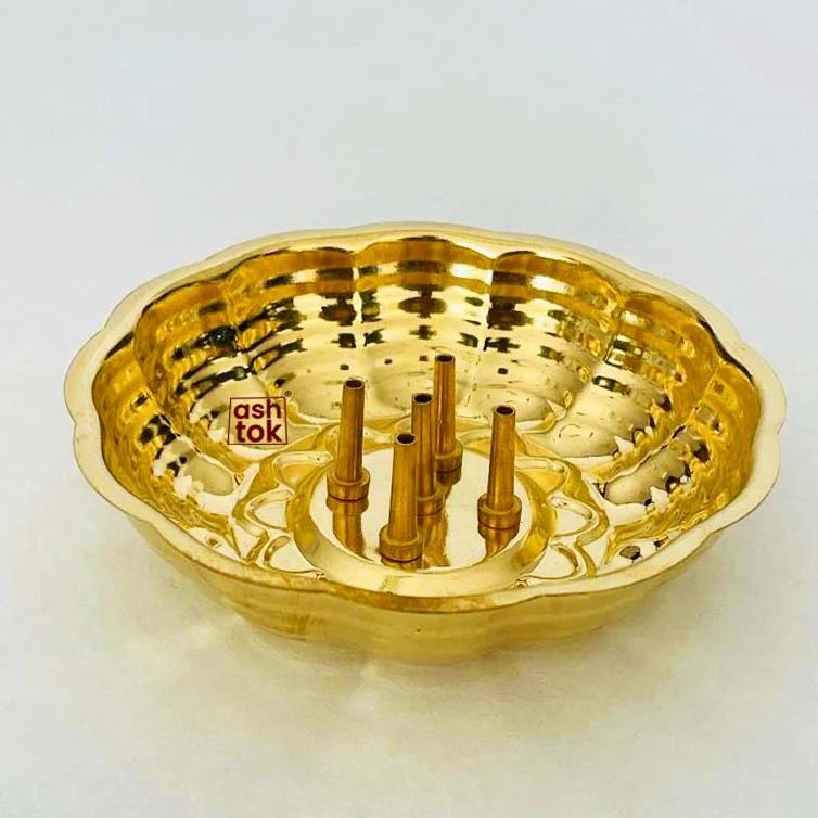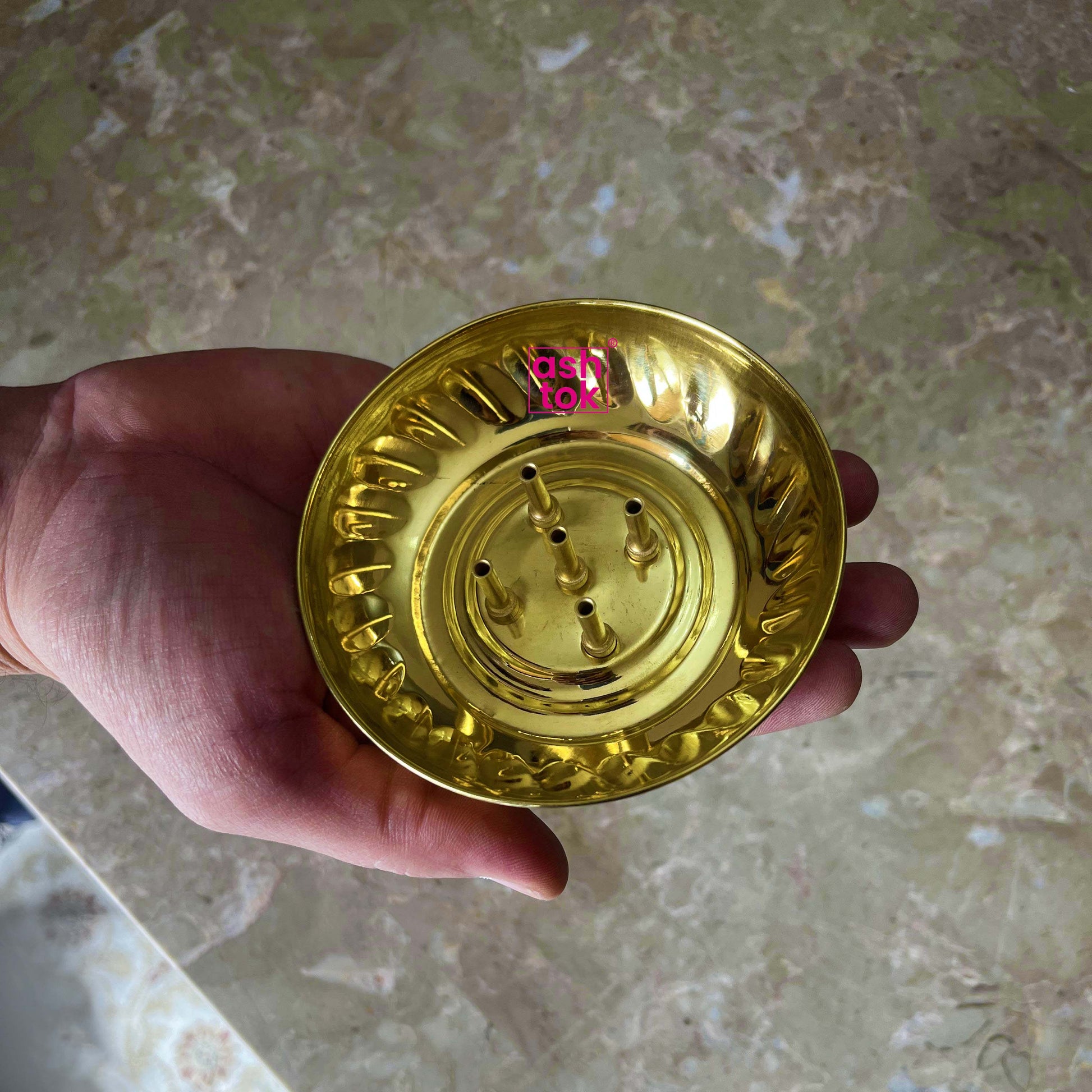 Agarbatti Bowl Brass, Incense Holder, Incense Burner Stick Stand, Ash Catcher (Dia 4 Inches)