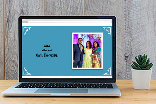 All you have to do is answer a bunch of questions about your dad, share his pictures and let our team handle the rest. Questions include details such as his nickname, hobbies, favourite food, birthplace, most used dialogue, etc.