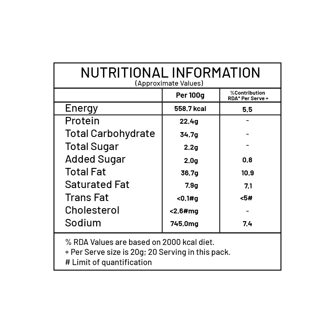 Gram Pulse Flour, Edible Vegetable Oil (Cotton Seed, Corn, Palmolein, Ground Nut and Rice Bran), Tepary Beans Flour, Gram Pulse, Split Mung Bean, Lentil, Potatoes, Cornflakes (Derived from Corn), Rice Flakes,Rice Powder, Edible Starch, Sago, Raisins, Cashew Nuts, Peanuts, Green Peas, Sugar Powder, Spinach Powder, Iodised Salt, *Spices & Condiments (Red Chilli Powder, Turmeric Powder, Mango Powder, Black Pepper Powder, Ginger Powder, Clove Powder, Mace Powder, Nutmeg Powder,Onion Powder, Garlic Powder, Cardamom Powder, Fennel, Sesame Seeds, Coriander, Mint Leaves Powder, Cumin Powder, Asafoetida Powder), Acidity Regulator (INS 330 and INS 296) , Anticaking Agent (INS 551), Leavening Agent [INS 500(II)] and Synthetic food Colour (INS 133).