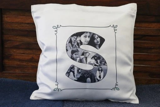 - Make something as simple as a cushion surprisingly special by designing the first alphabet of his/her names with their favourite photographs. This unique customised gift will always have a special place, not just in their homes.