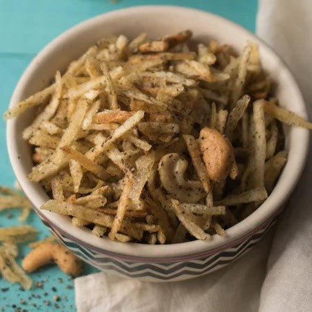 Potato, Cashews, Black Pepper Powder, Sugar, Salt, Raisins, Refined Groundnut Oil