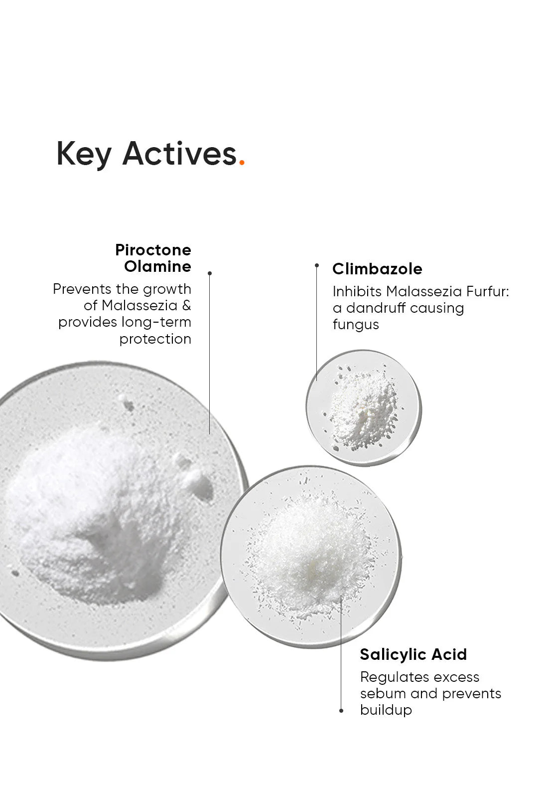 Olamine, Climbazole, and Salicylic Acid to effectively target dandruff-causing fungi and scalp buildup. Experience visible results from the first wash, as this potent yet gentle cleanser works to eliminate flakes, reduce irritation, and restore scalp balance. Designed for long-term dandruff control, it soothes the scalp while maintaining the optimal hydration, leaving your hair refreshed, clean and protected against recurring dandruff.