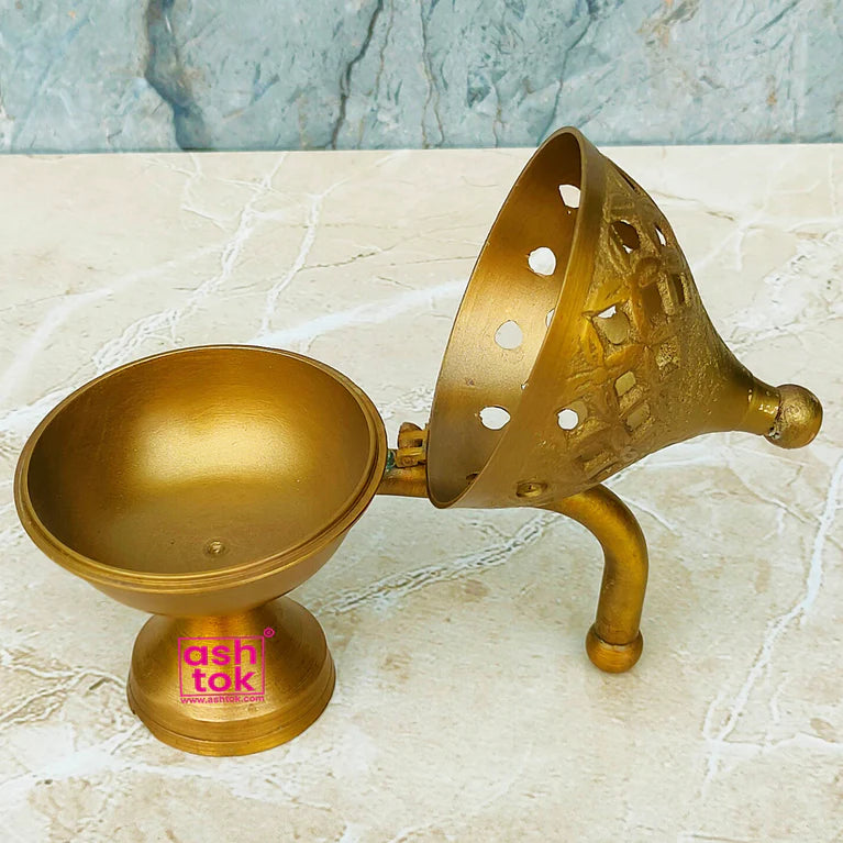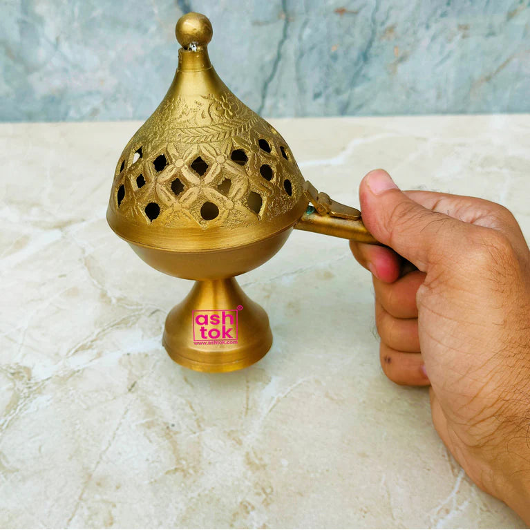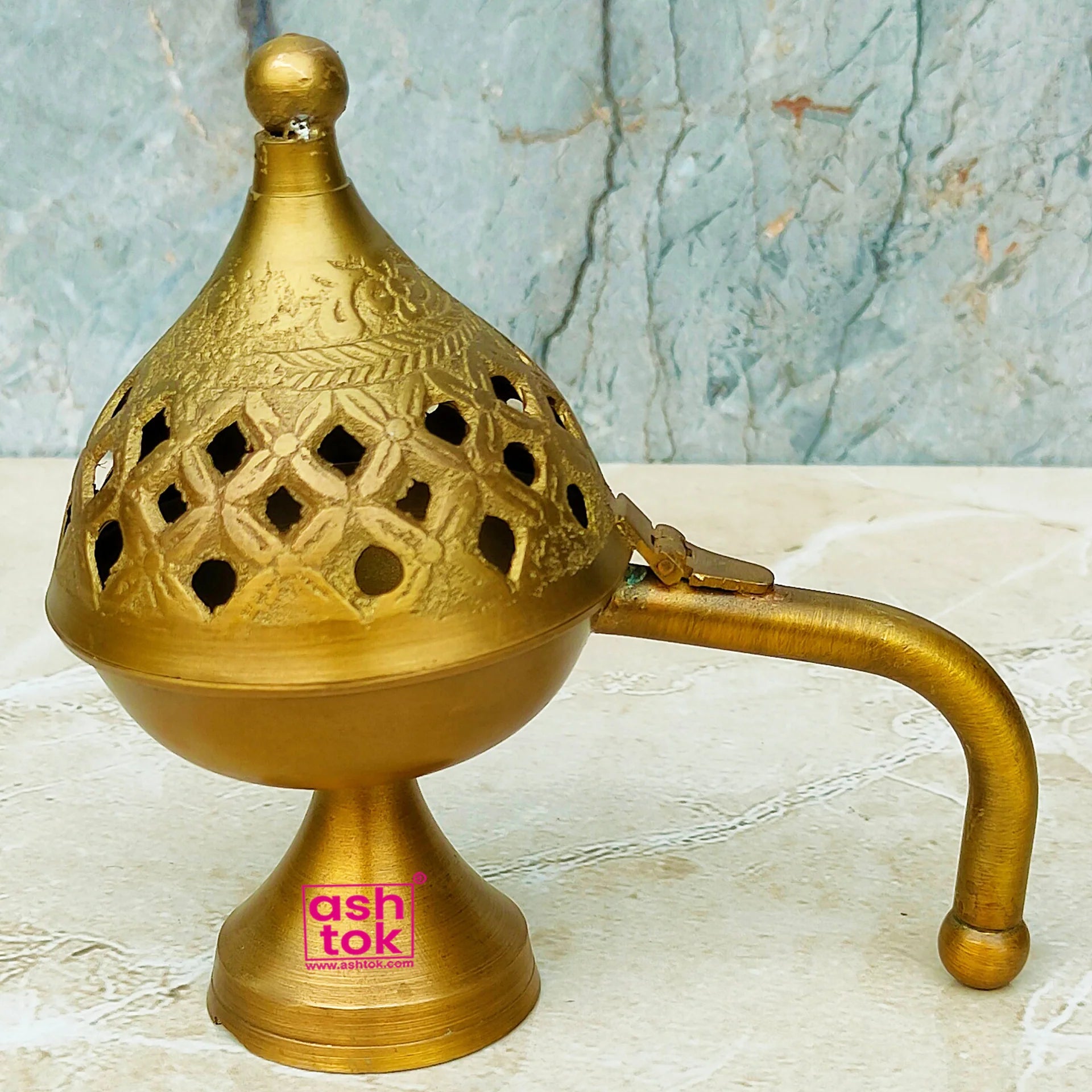 Meanwhile, the incense burner with a handle, often referred to as a bakhur burner, presents a perfect marriage of utility and elegance. Its ergonomic design allows for easy handling while exuding an aura of refined grace. Crafted from premium brass, these burners not only facilitate the burning of fragrant bakhur but also serve as captivating accents, adding a touch of sophistication to any room.