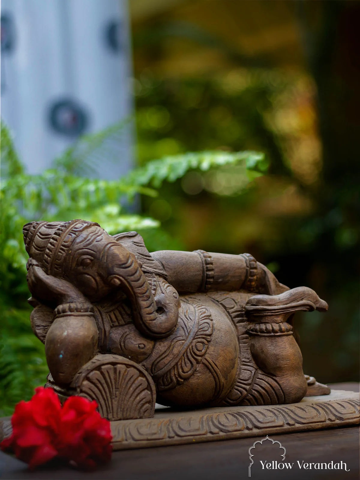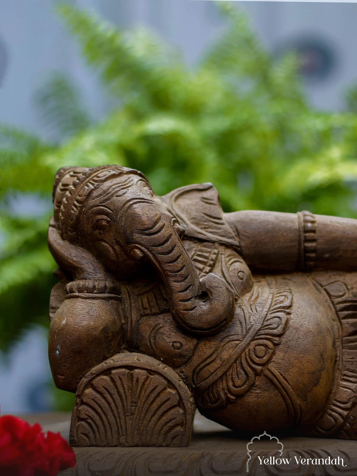 This Antique Wooden Ganesha Sculpture is a striking artefact, that catches instant attention. This rare artefact is believed to be from Tamil Nadu.