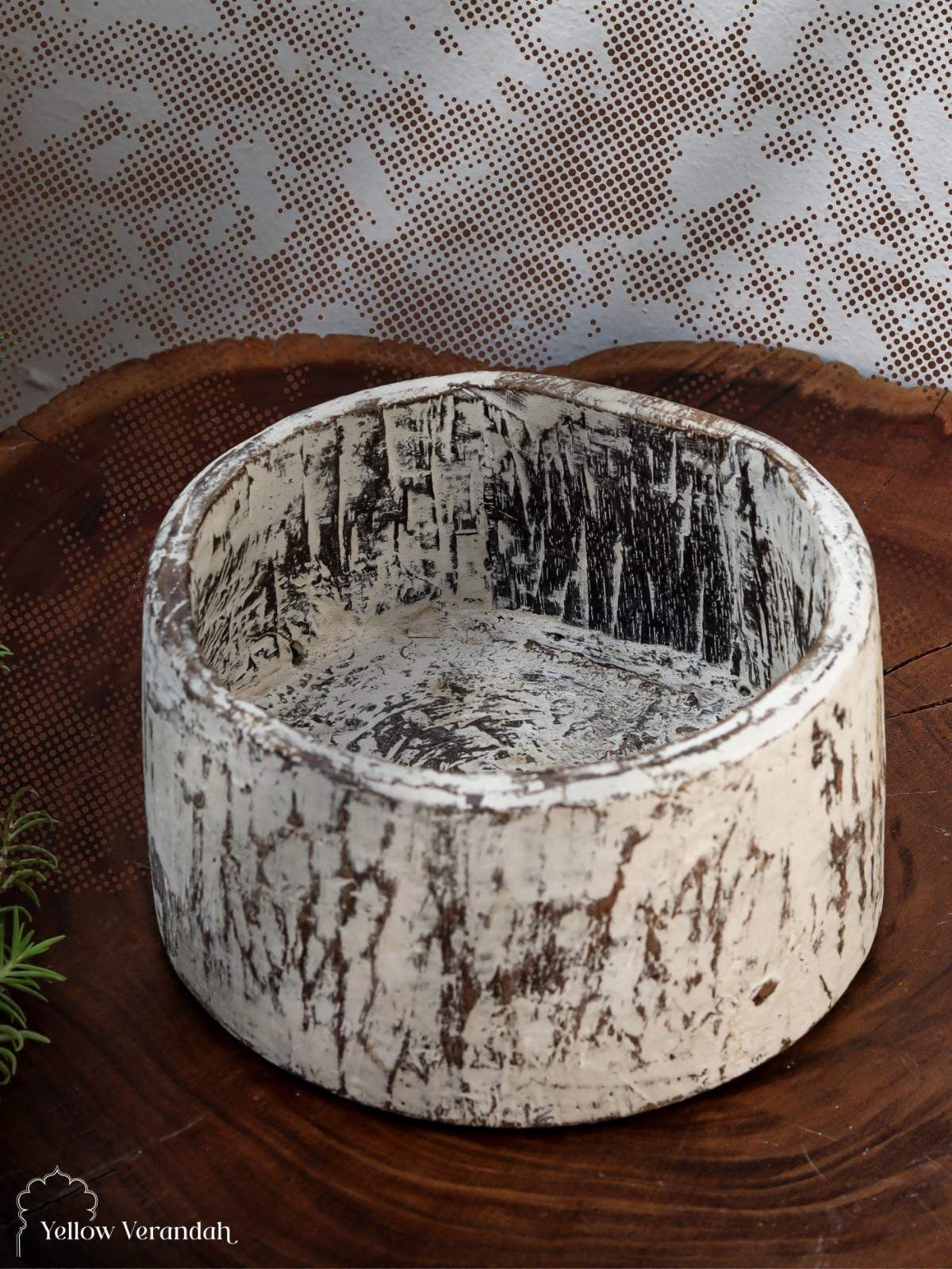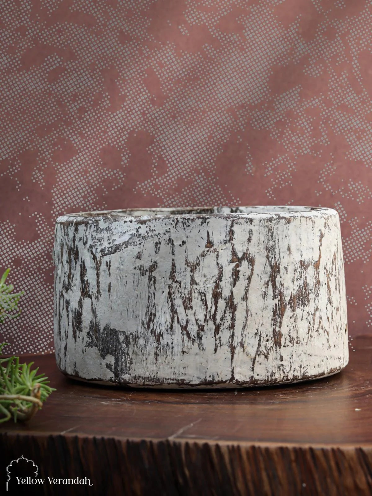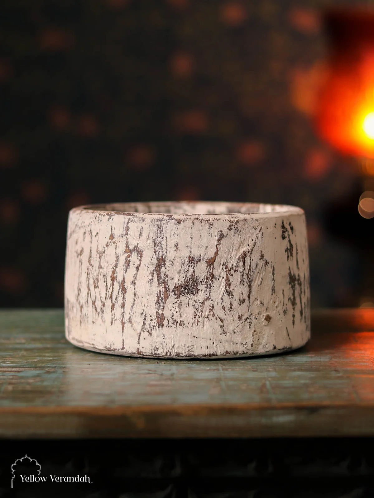 This original Antique Wooden Bowl is rare collection from old days. Once used as grain pot in Indian, especially Nepali households, this beautiful piece can be used as table accents in your bespoke abode.
