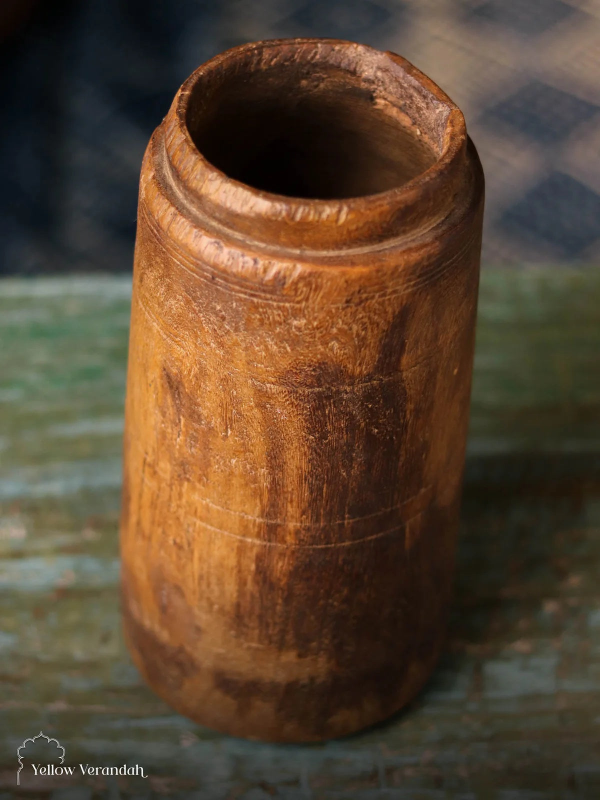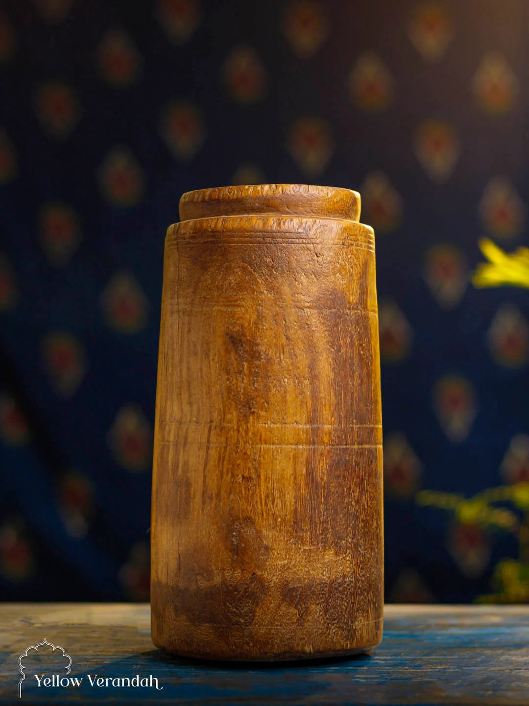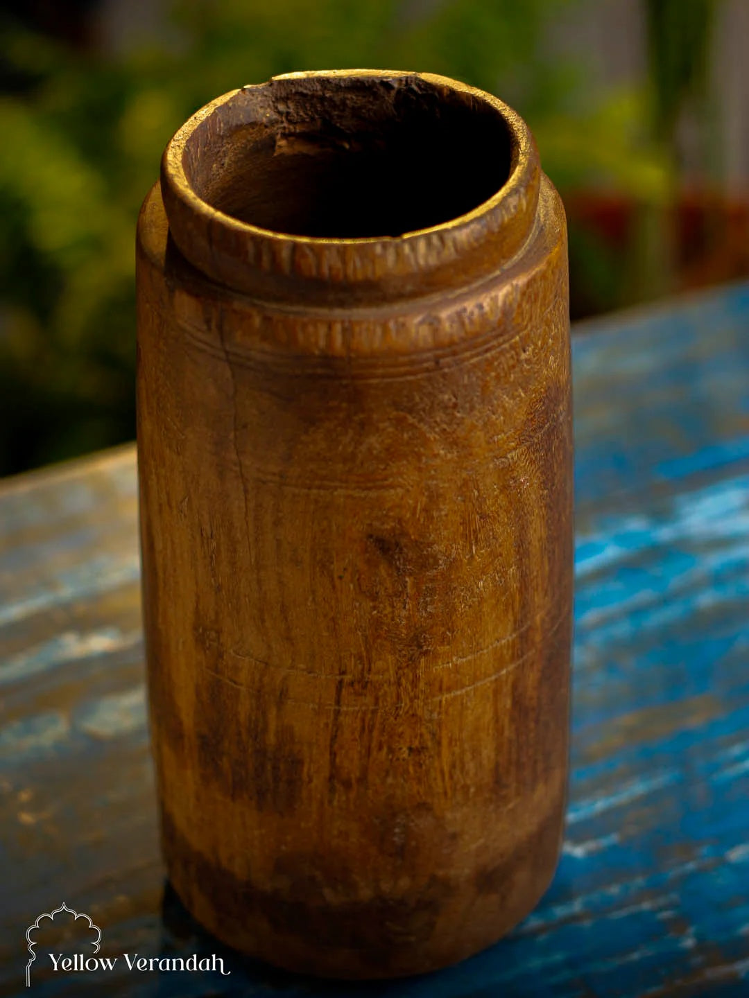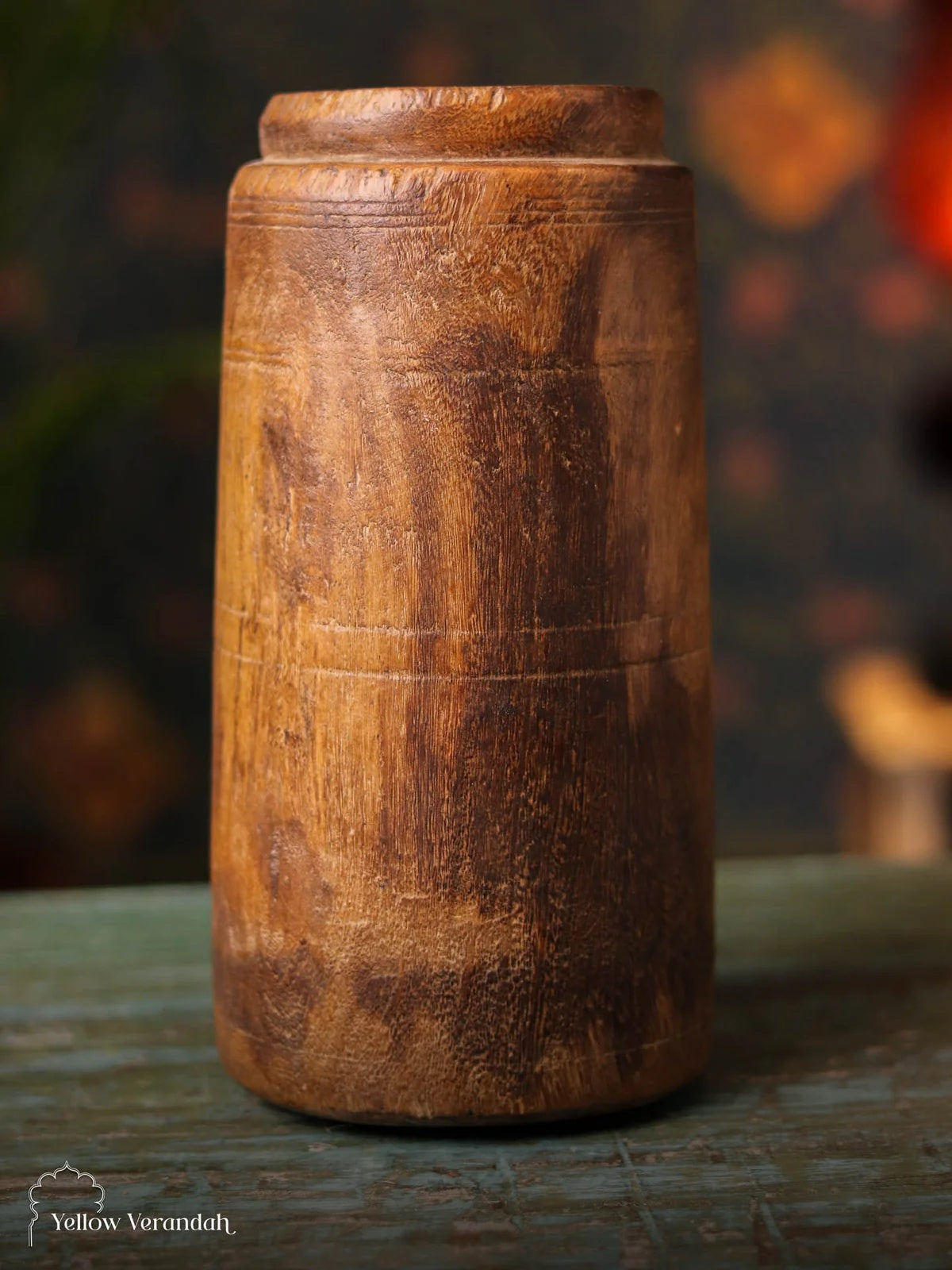This original Antique Wooden Vase Pot is rare collection from old days. Once used as grain pot in Indian, especially Nepali households, this beautiful piece can be used as table accents or flower vase in your bespoke abode.