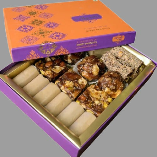 This carefully picked premium Dry Fruits sweets box has everything to impress your loved ones during Diwali. Be it the super tasty Kaju Burfi or the healthy and tasty Dry Fruit Laddu, this box has something for everyone in the house. Packed into each wonder ball is lots of energy, health and taste - eat two to three and feel fully satisfied for an entire day!