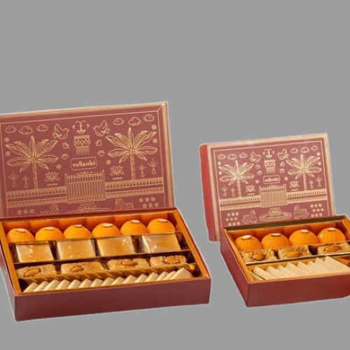 At Vellanki Foods, we believe every occasion deserves a touch of sweetness. Our delightful selection of handpicked sweets and snacks, elegantly packaged, turns gifting into a heartfelt experience. Share Vellanki and spread joy, flavours, and cherished memories with your loved ones. Taste the celebration and let your loved ones savour the moments that matter!