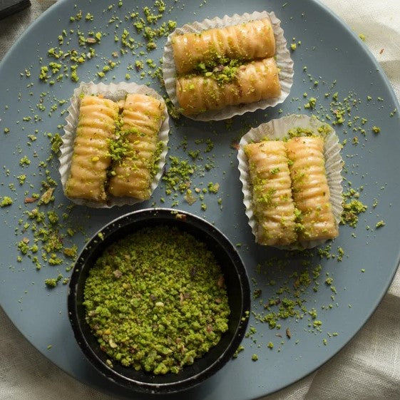 Baklava Fingers offer a portable twist on the classic dessert, with tightly rolled filo pastry filled with honeyed nuts, perfect for on-the-go indulgence.