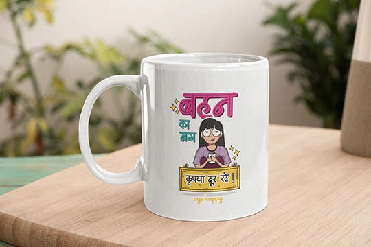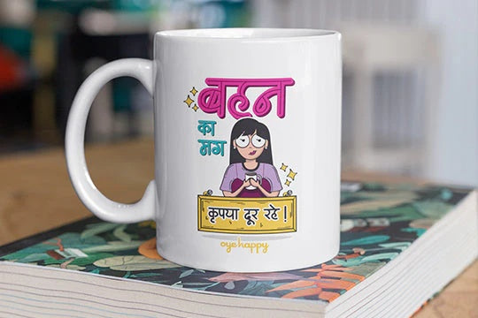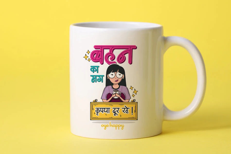 Content on the mug (written in Hindi): Behen ka Mug. Kripya Door rahey.