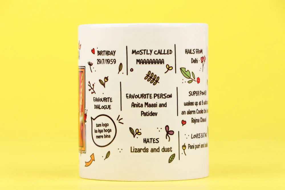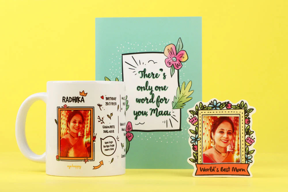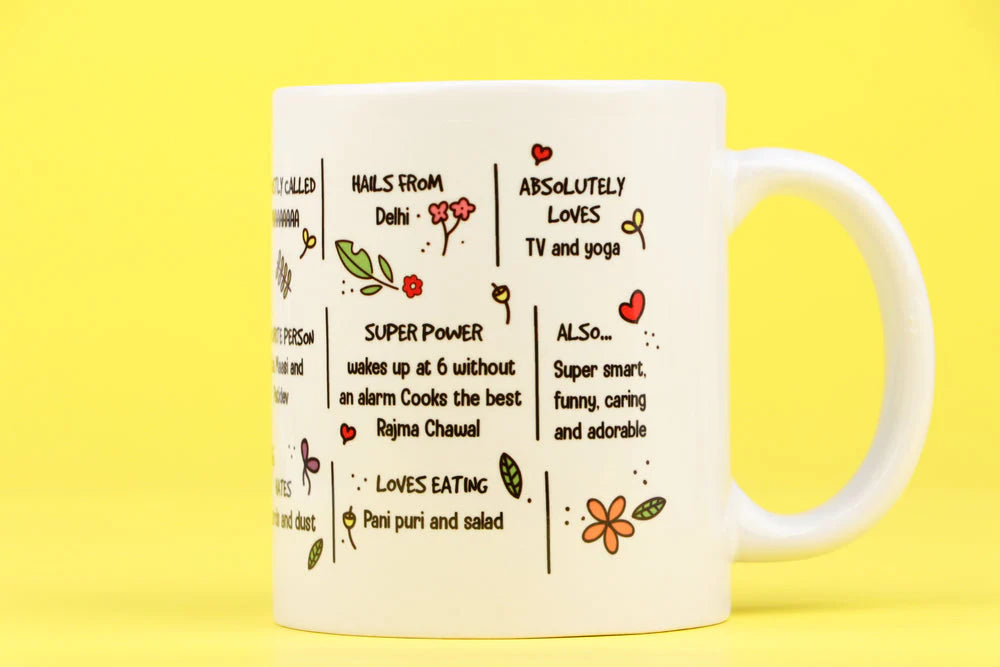 Know your mom so much that you can write a book on her? If not a book, this combo has a mug professionally designed with things that define the lovely person she is. All you have to do is answer a bunch of questions about her, share her picture and let our team handle the rest. Questions include details such as their nickname, hobbies, favourite food, birthplace, most used dialogue, etc.