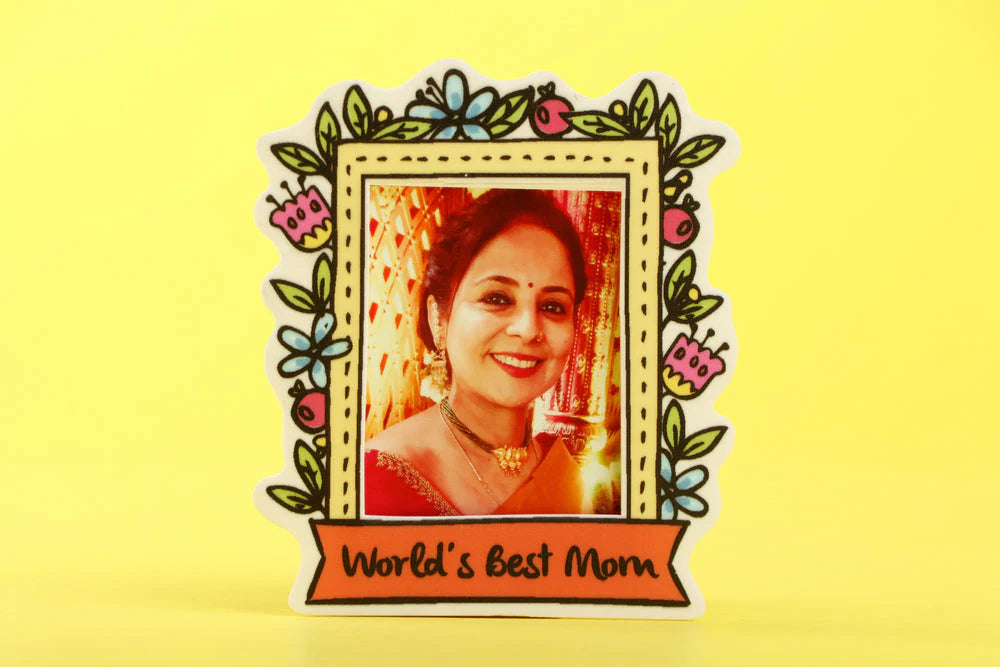 A special magnet designed to always remind her that she’s the best mom in the world. The magnet is customized with 2 of her favourite pictures. Content on the magnet says: World’s Best Mom