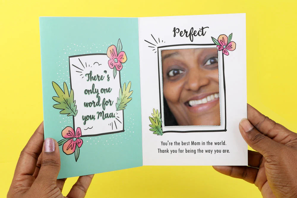 Add a touch of magic to your greeting card and express how much your mom means to you. This special greeting card is designed with a mirror attached to it so that when your mom opens the card, she will see her own face reflecting on it.