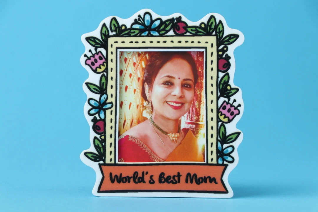 The magnet is customised with 2 of her favourite pictures so that you can easily change the photos whenever you like. Pictures to customise the order can be shared after the payment page.
