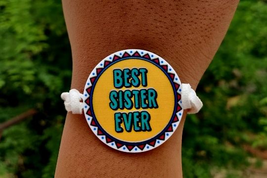 If you agree with us, then delight your sister with this quirky rakhi designed with the message ‘Best Sister Ever.’