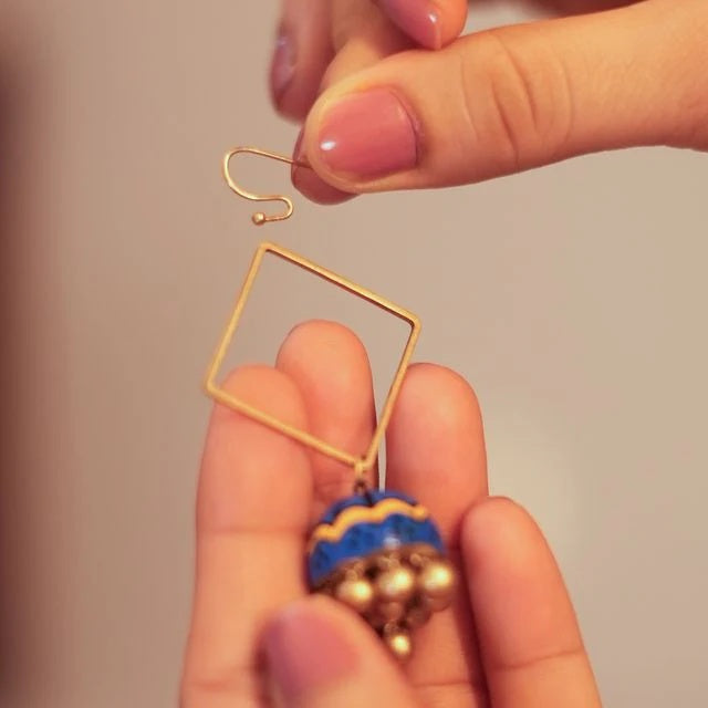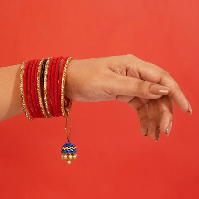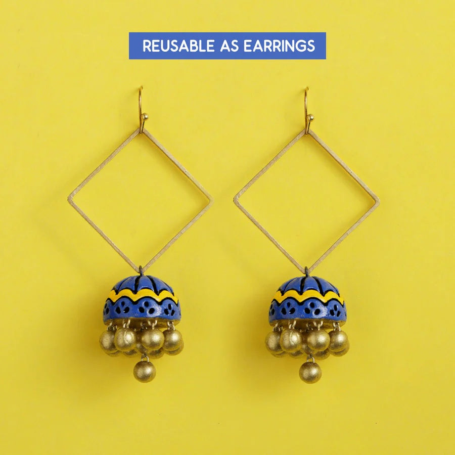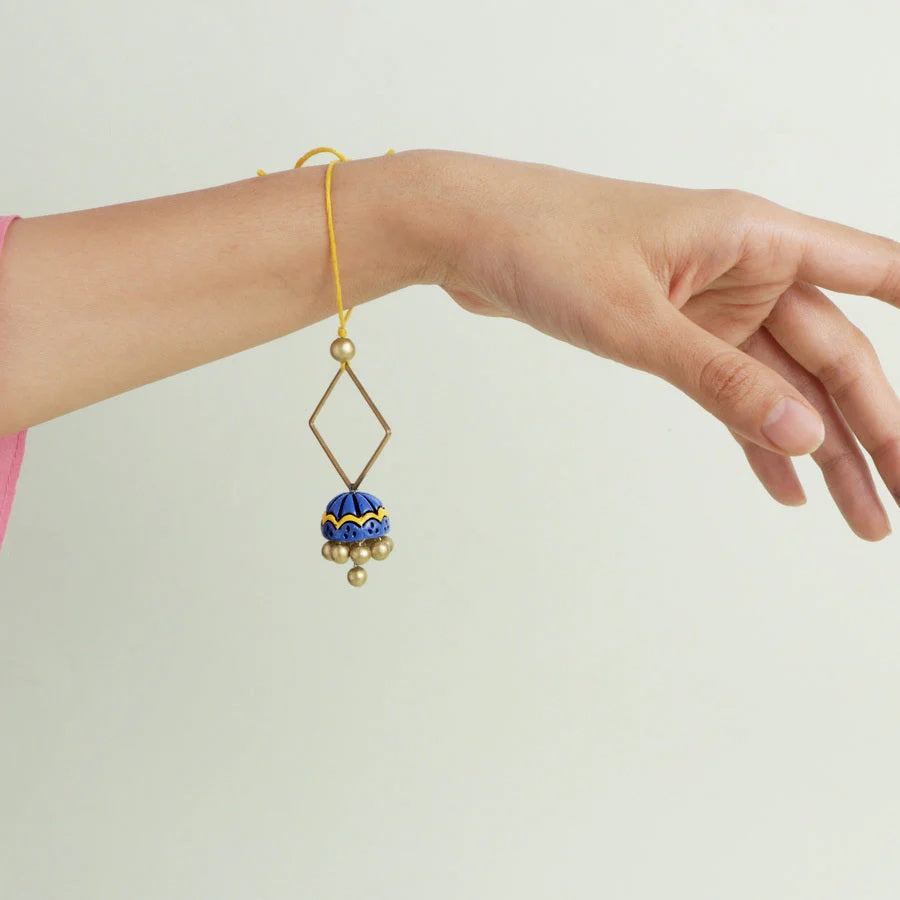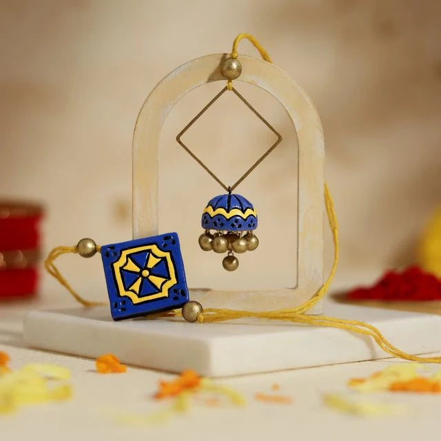 Crafted from eco-friendly terracotta, this sustainable rakhi set features a pair of beautifully crafted lumba rakhis that double as stunning earrings post-celebration.