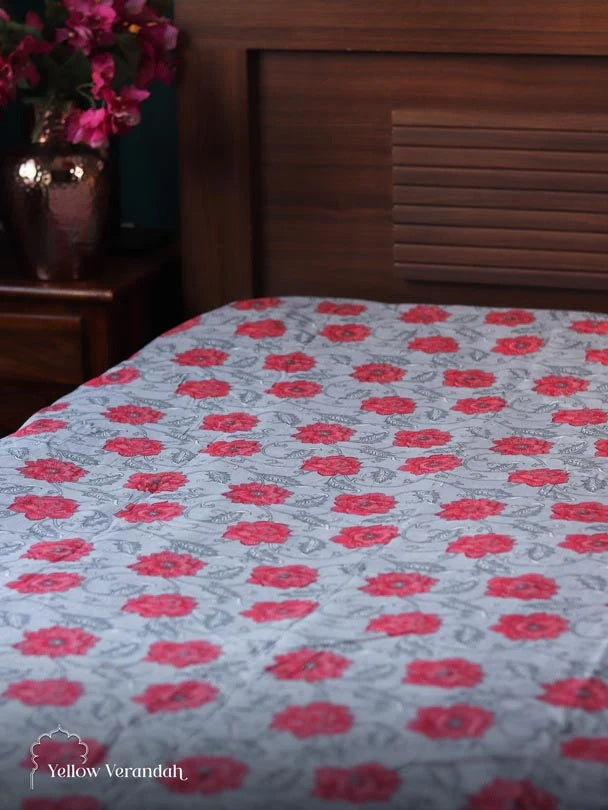 Block Printed Cotton Bedspread - Double