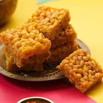Gram Flour, Clarified Butter, Jaggery, Almonds, Pistachio, Cardamom