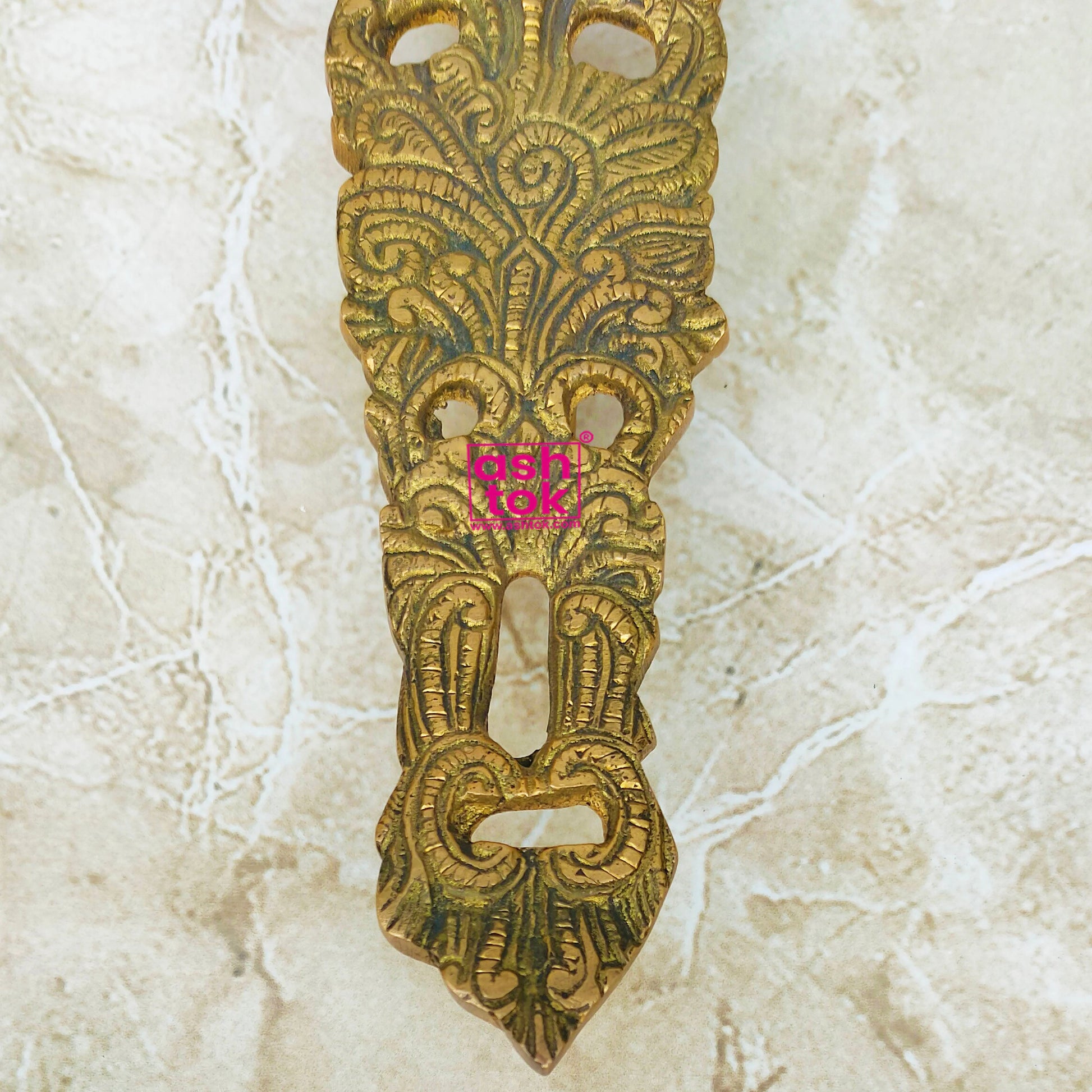 Design: The Home Decor of the Brass Aarthi Spoon is inspired by classical motifs and traditional patterns, adding a regal touch to your religious ceremonies. The intricately carved handle showcases the craftsmanship involved in creating this piece, with attention to detail that enhances the overall aesthetic. The Brass spoon's design is not only functional but also a visual delight, making it a perfect addition to your puja room or Temples and spiritual space.