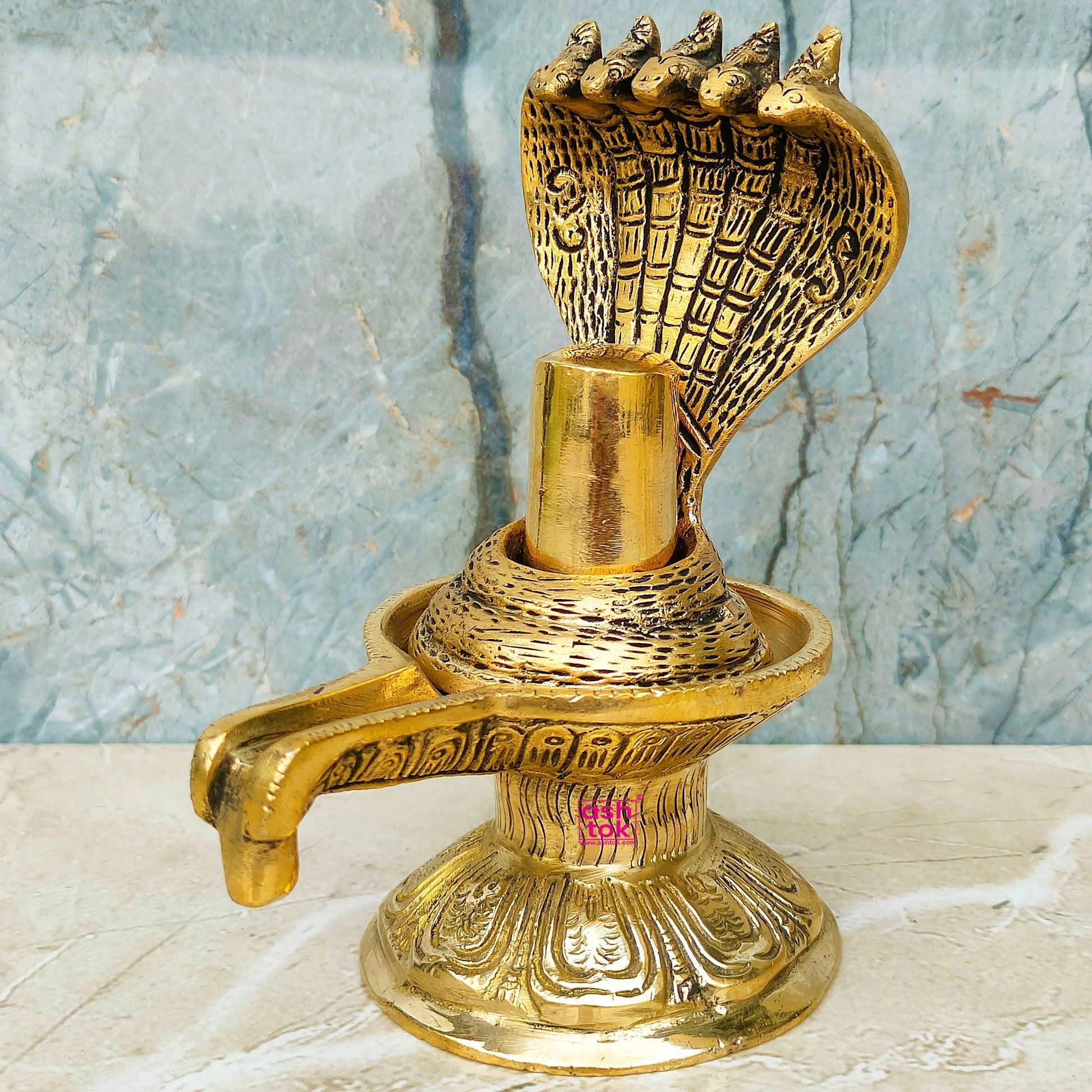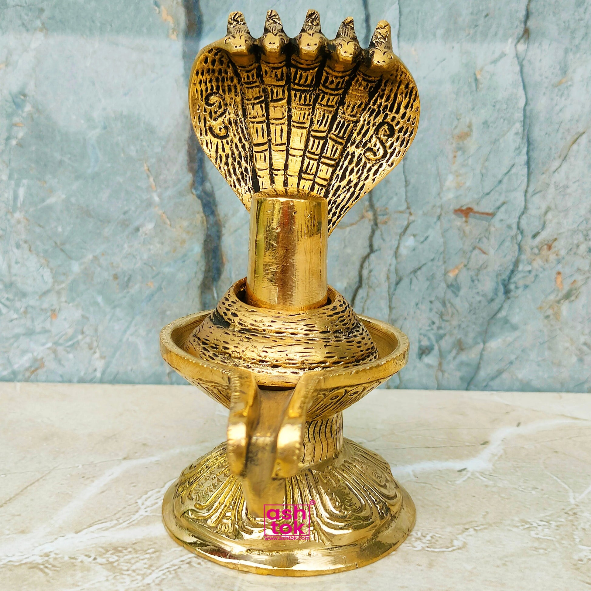 Brass Antic Mahadev Shiva Lingam with 5 Head Snake, Puja Item
