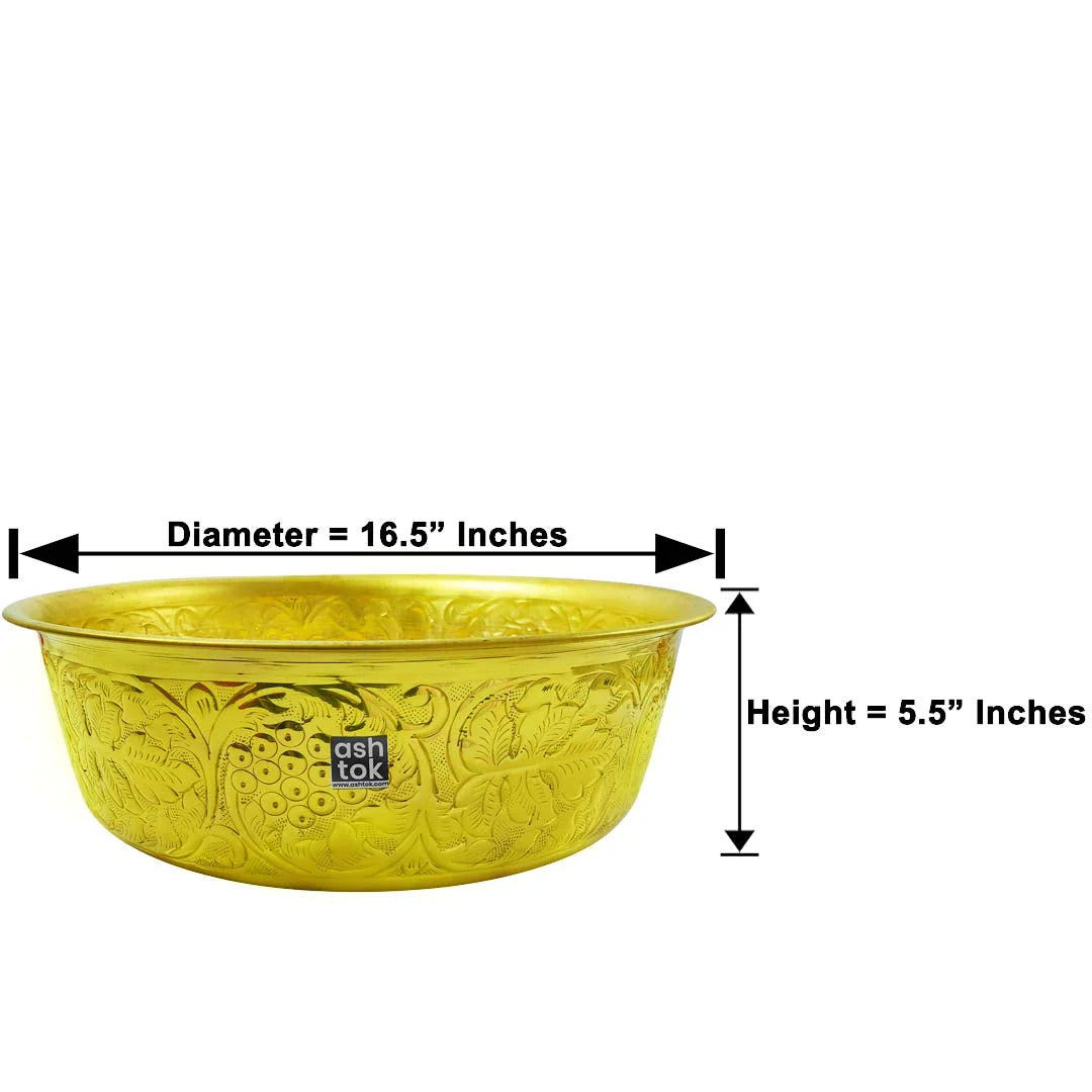 Brass Basin Bowl for Wedding Ceremony, Talambralu Bowl, Diameter 16.5 Inches, and Height 5.5 Inches.