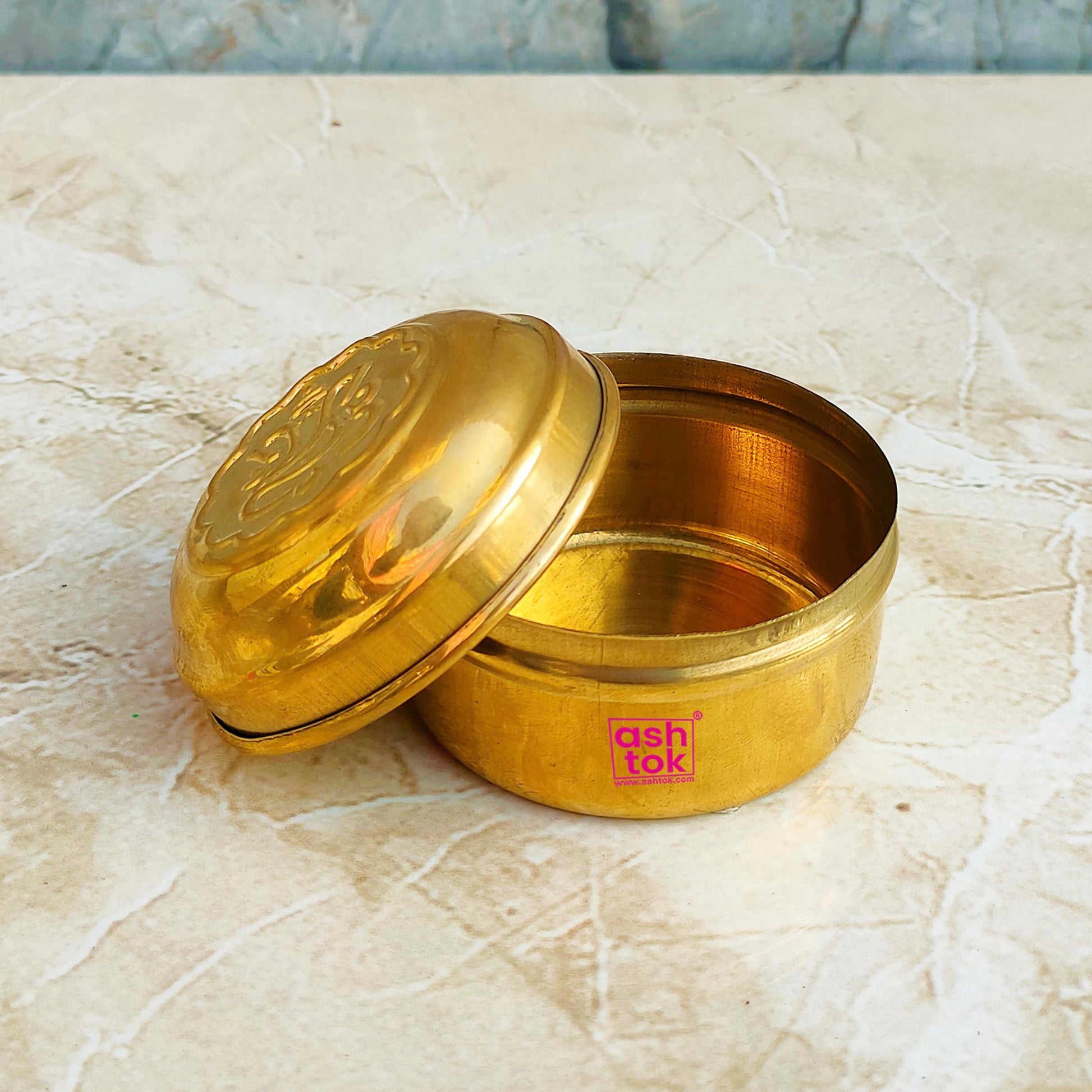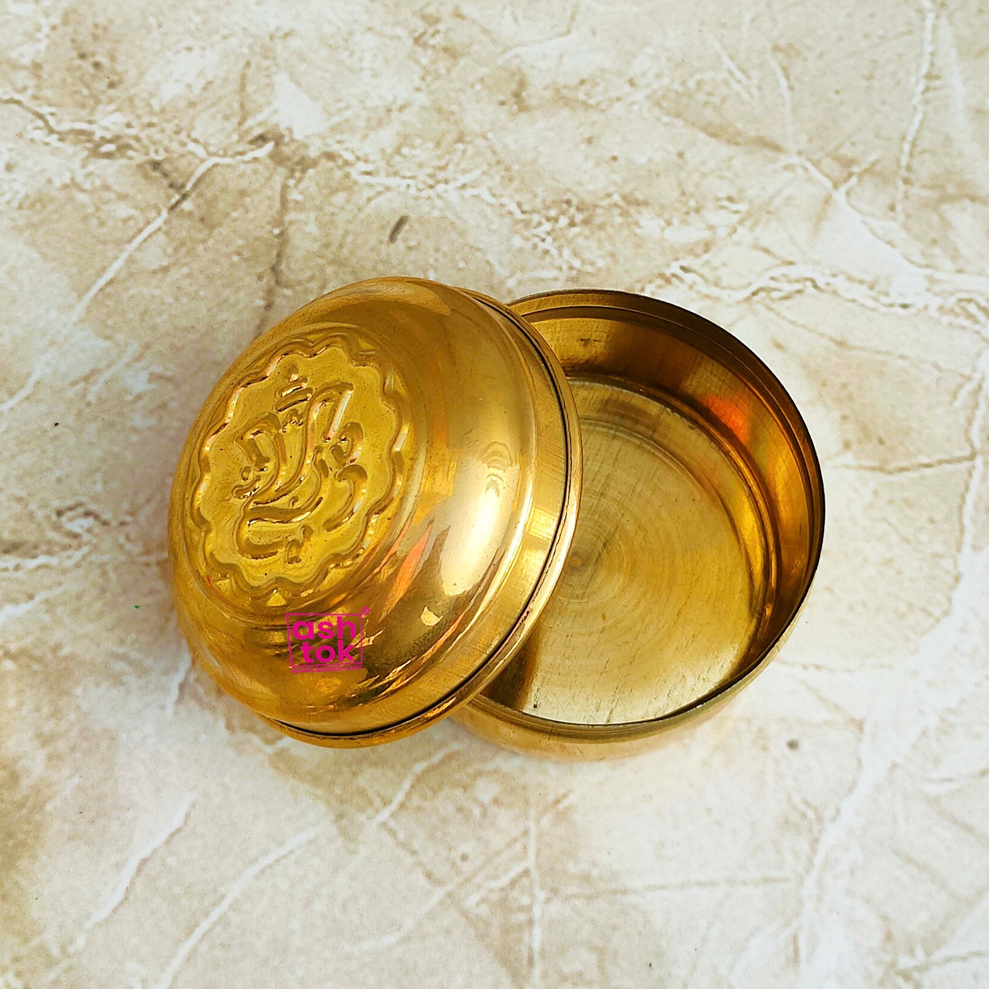 Brass Box, Brass Pooja Box with Embossed Ganesh Design on Lid