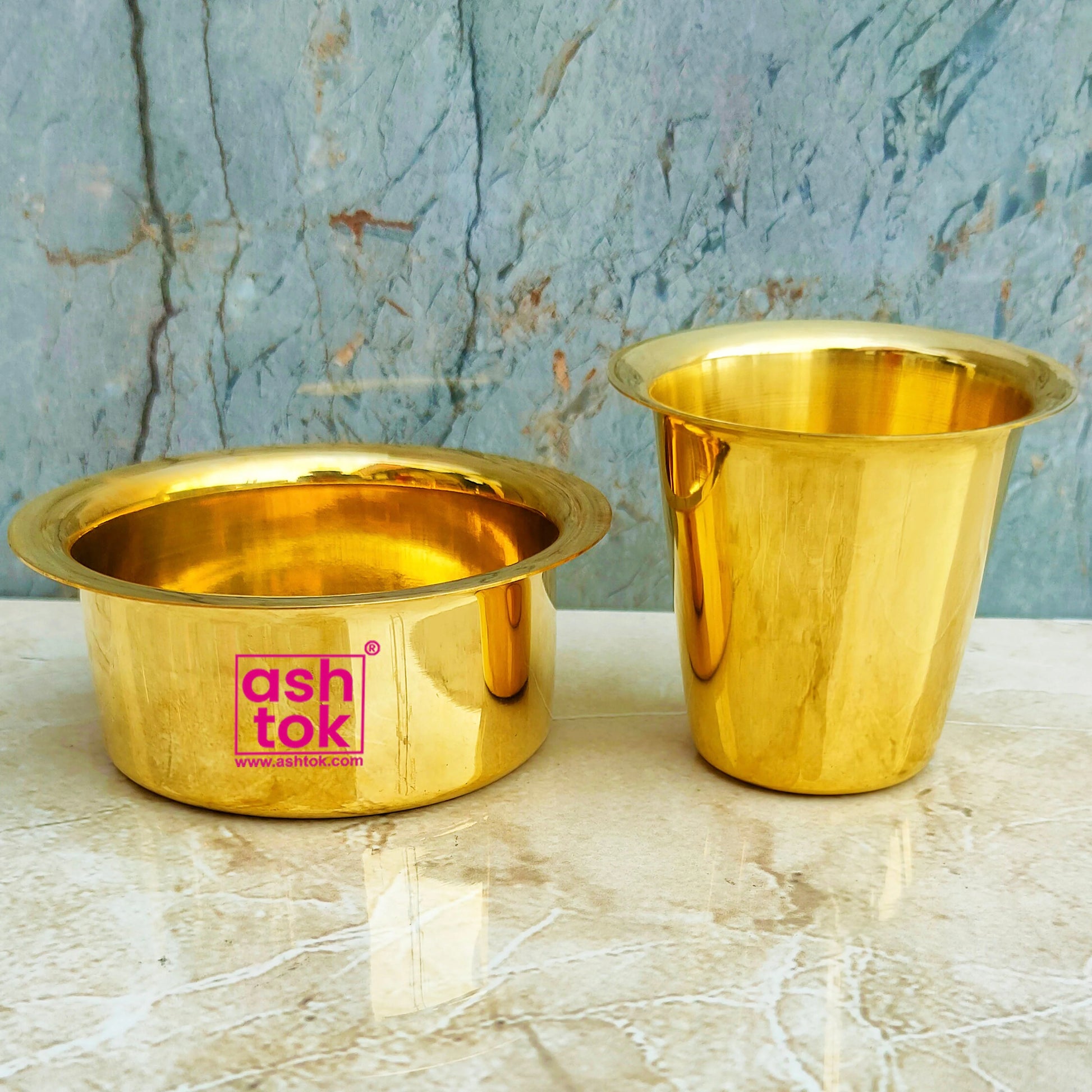 Brass Coffee Dabra, Traditional Coffee Cup and Dabra Set, 2-Piece, Madrasi Filter Coffee Set