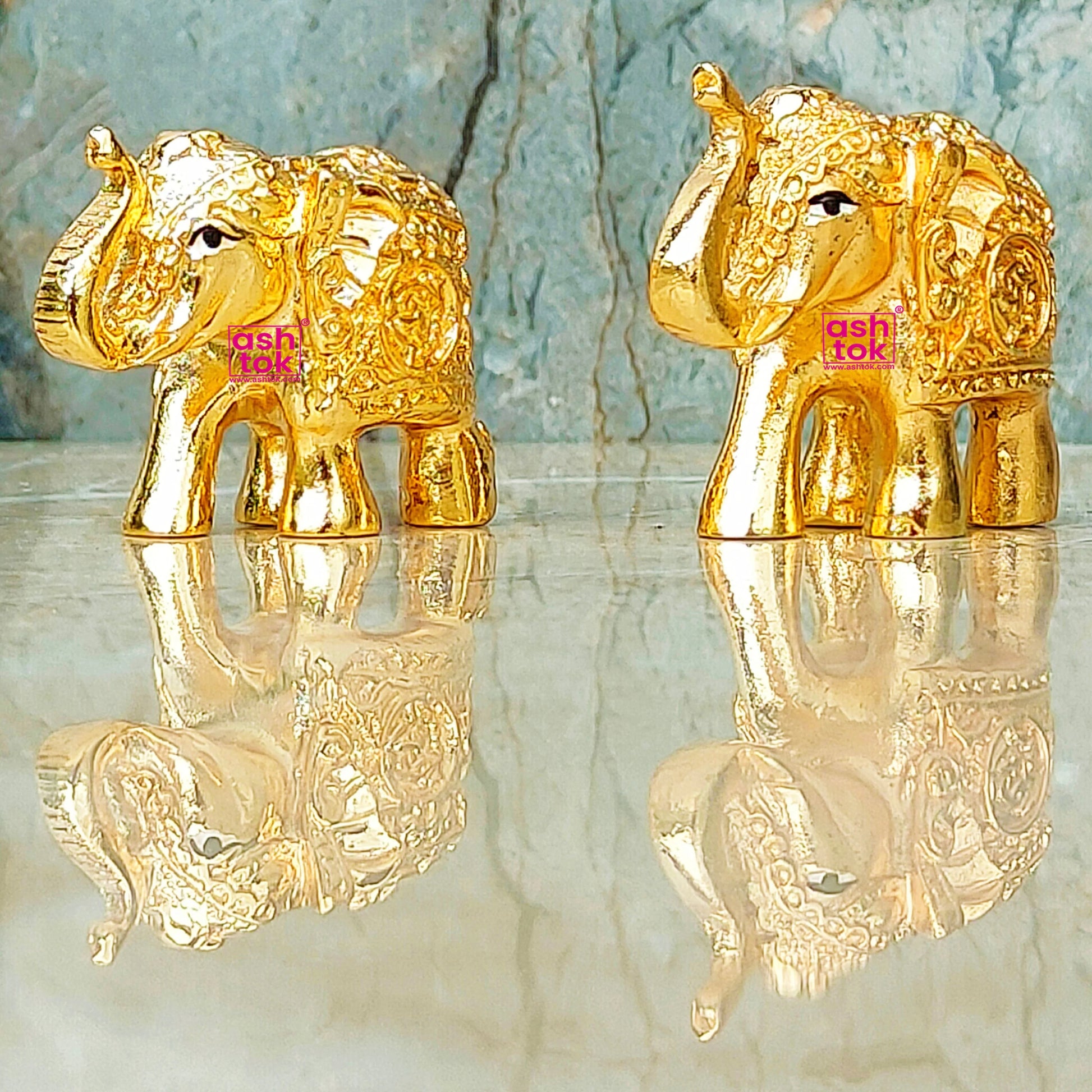 Brass Coloured Elephant Idols, Handcraft Decorative Item, Gift Item (Pack of 2 Pcs)