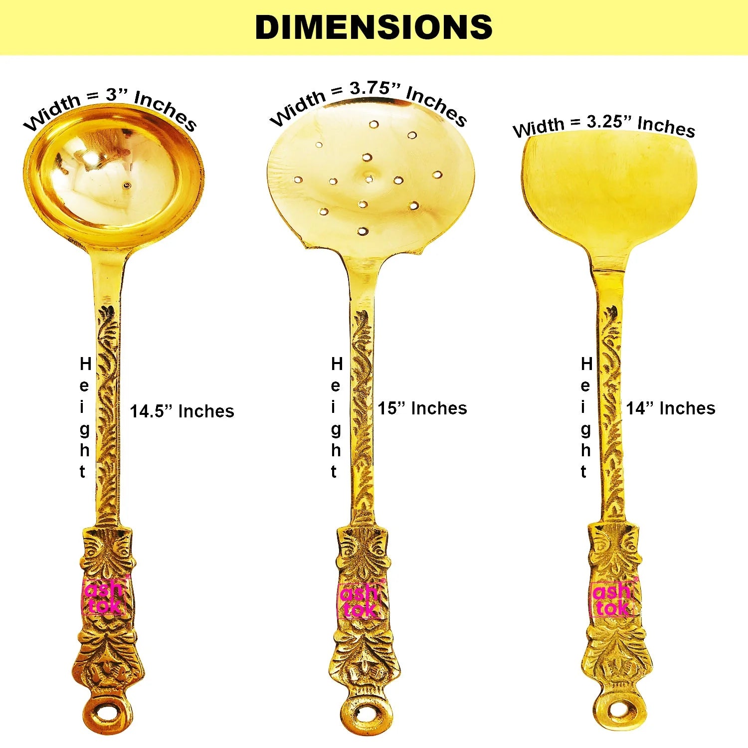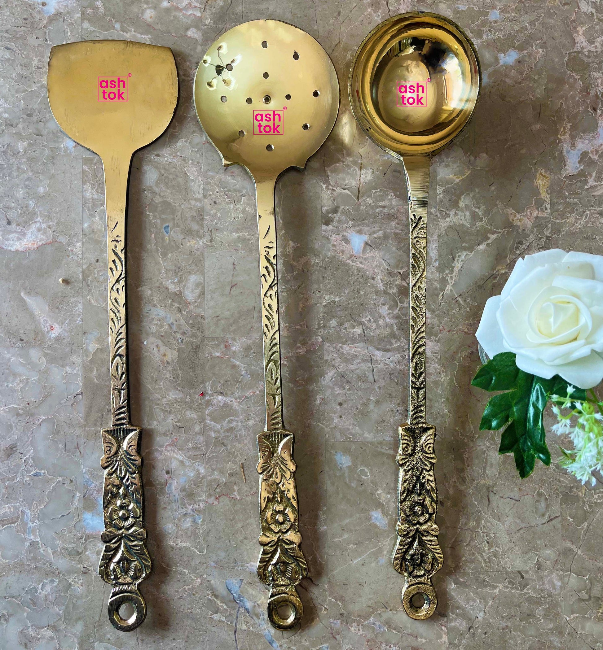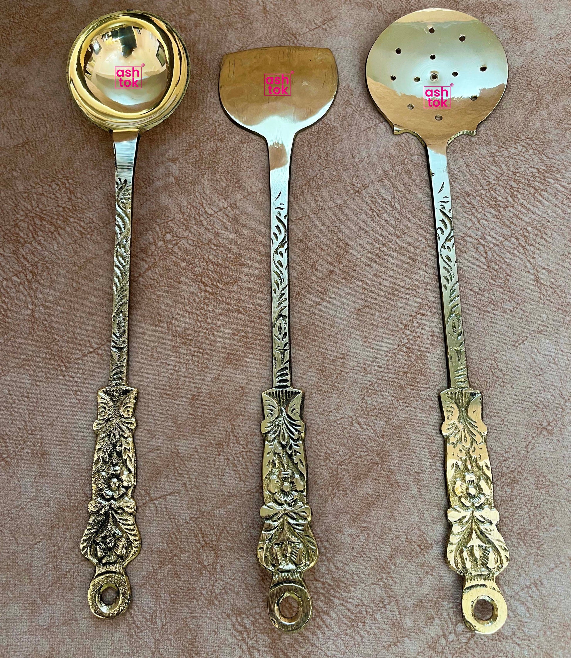Brass Cooking Spoon Set, Cooking ladle, Brass ladle Spoon Set of 3.
