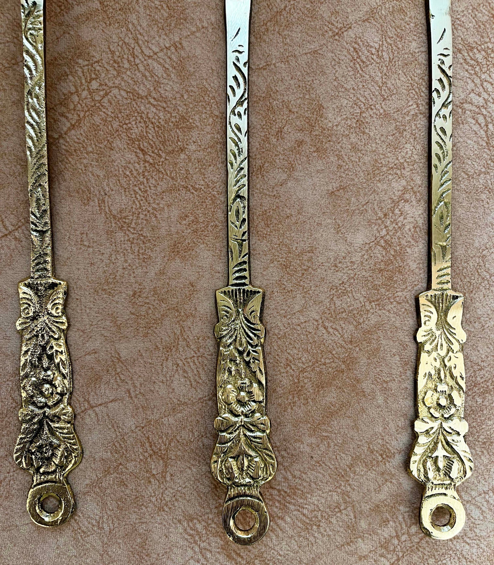 Product Details: A brass cooking spoon set typically refers to a set of kitchen utensils that are made from brass. Brass is an alloy of copper and zinc and is known for its durability and resistance to corrosion. These types of cooking spoons are often used for cooking and serving food, and can come in various sizes and shapes, such as slotted spoons, ladles, and skimmers. They are also often used for decorative purposes in traditional kitchens. Some people prefer a brass cooking spoon set because it is more durable than other metals.