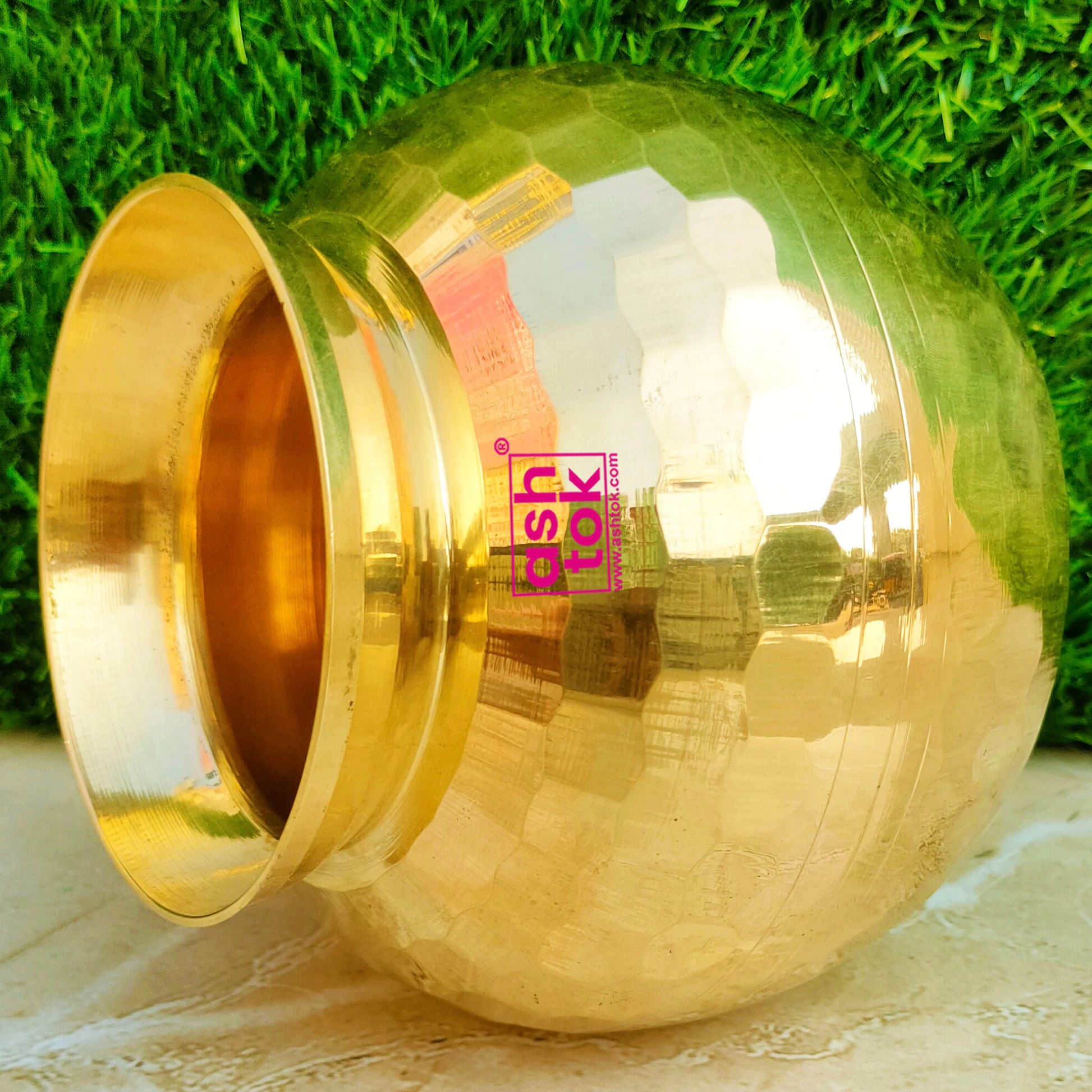 Product Details: Ashtok designed our Brass Diamond Lota, an exquisite piece that skillfully combines tradition and practicality, you may lose yourself in the ageless allure of ancient craftsmanship. This magnificent work of art, which is both a practical vessel and a representation of cultural diversity, is expertly crafted and covered in elaborate patterns resembling diamonds. The Brass Drinking Lota is a useful addition to your house as well as a work of beauty. Its versatility extends to serving as a sophisticated centrepiece on your dining table or as a place to store and pour water during religious ceremonies. Its polished brass surface improves its aesthetic appeal and ease of cleaning and maintenance.