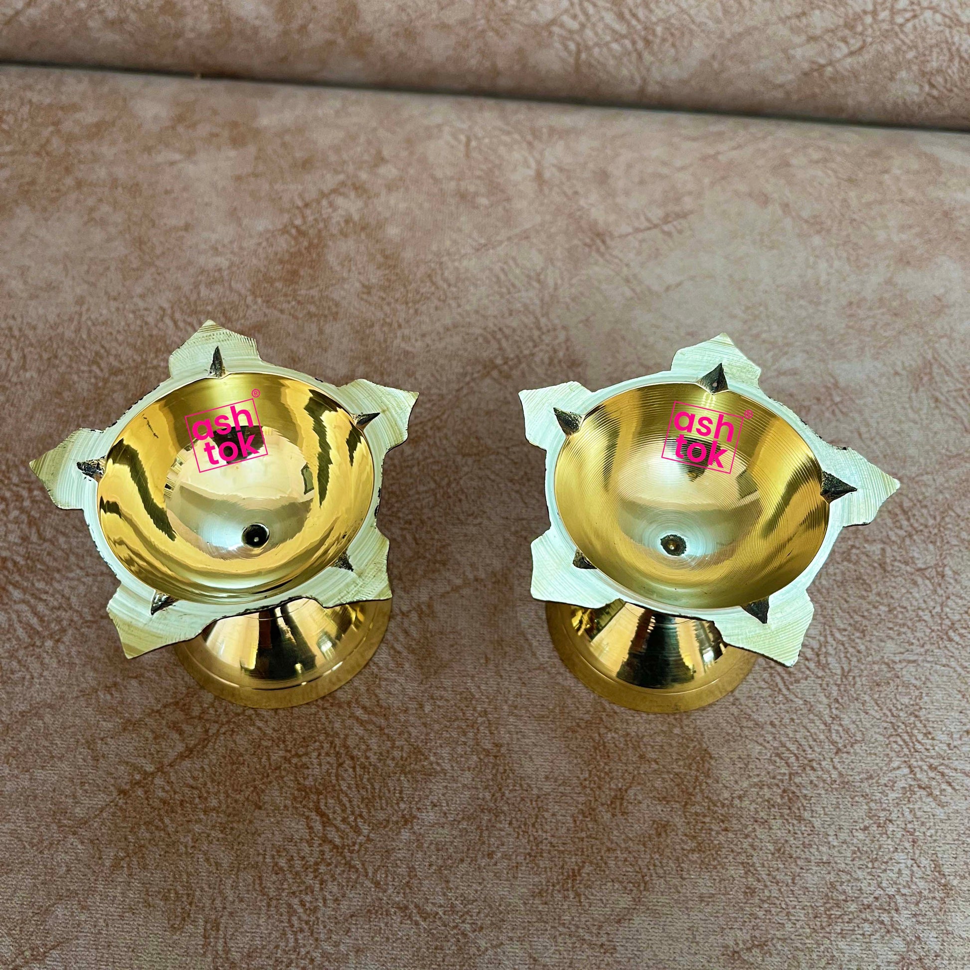 Brass Diya, Brass Panch Batti Diya, Deepam, Oil Lamp (Dia - 2 Inches)