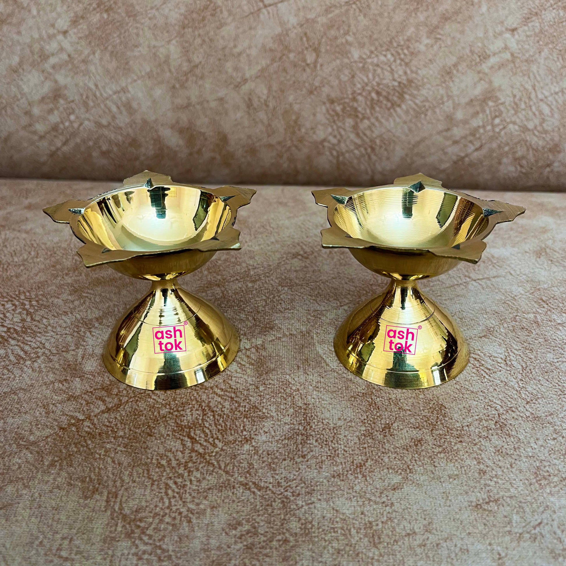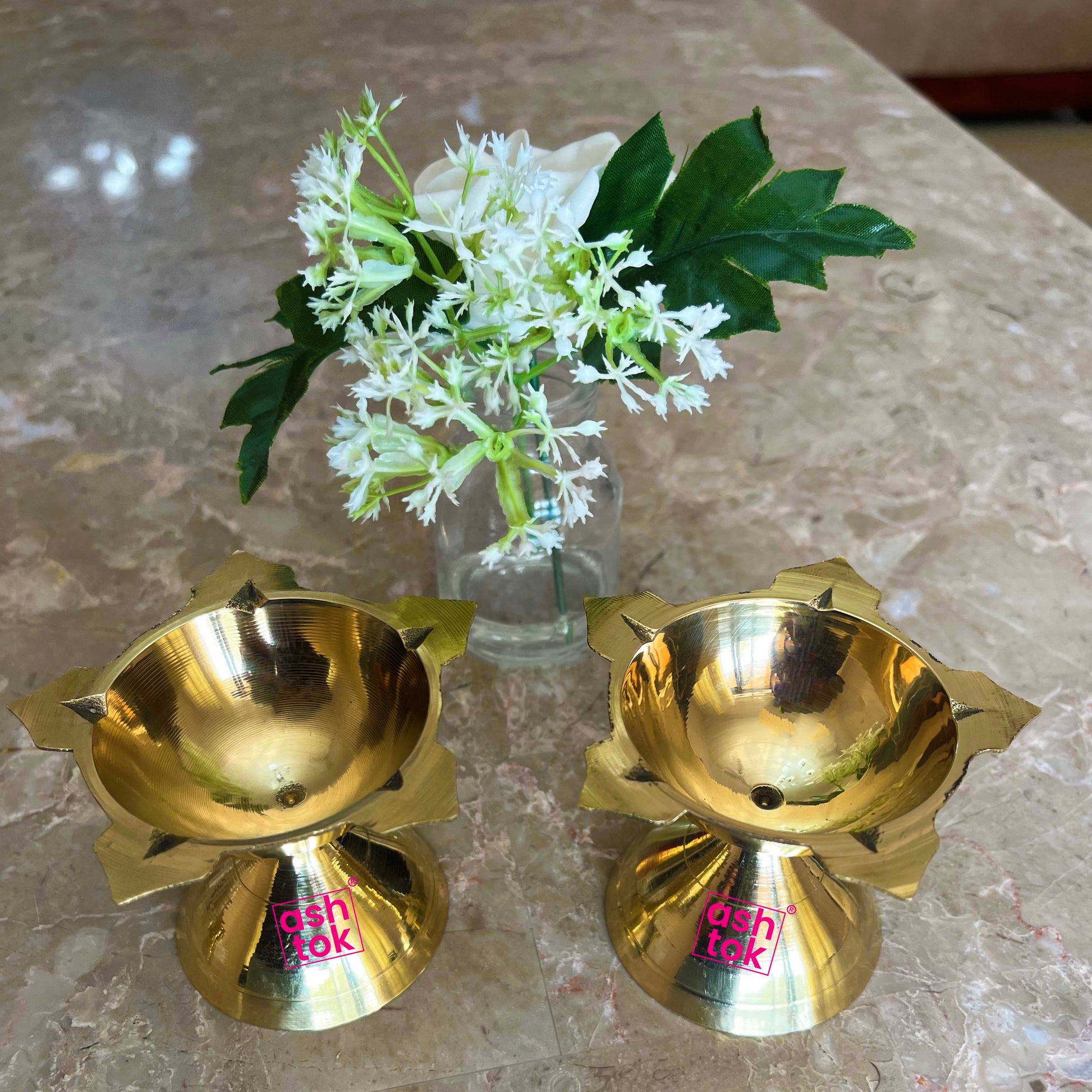 Brass Diya, Brass Panch Batti Diya, Deepam, Oil Lamp (Dia - 3 Inches)