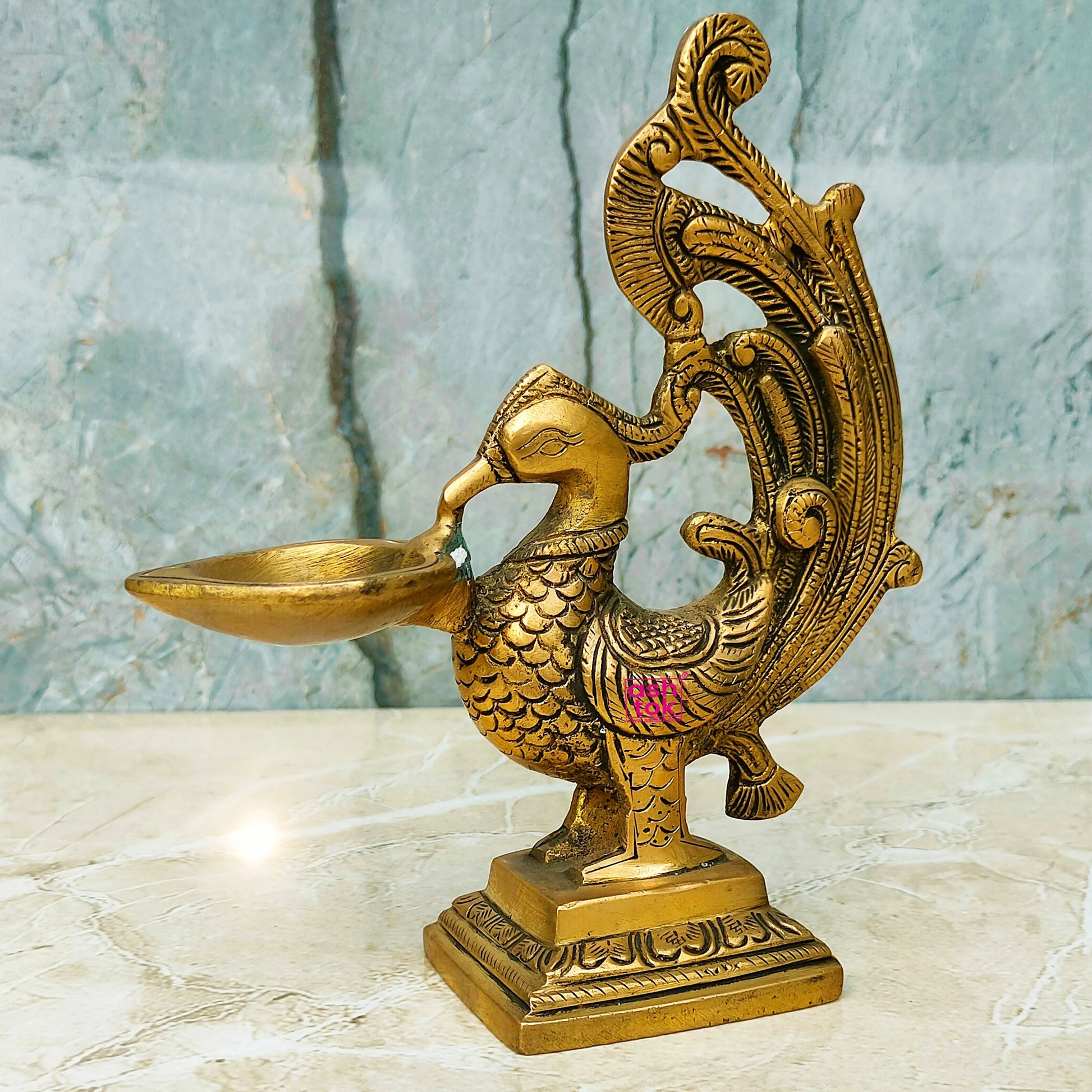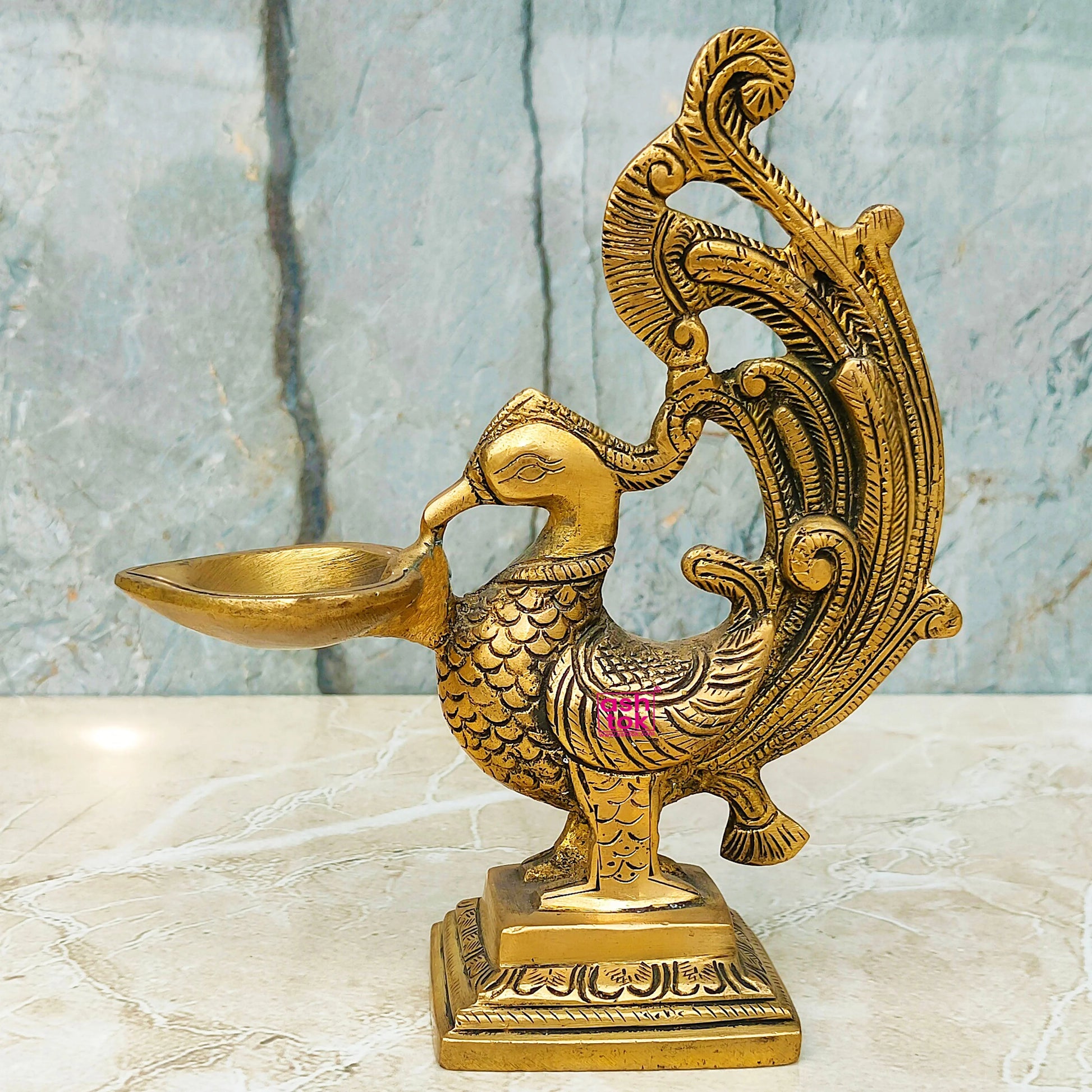 Ashtok Antique Brass Diya Peacock Bird Design Oil lamp diya