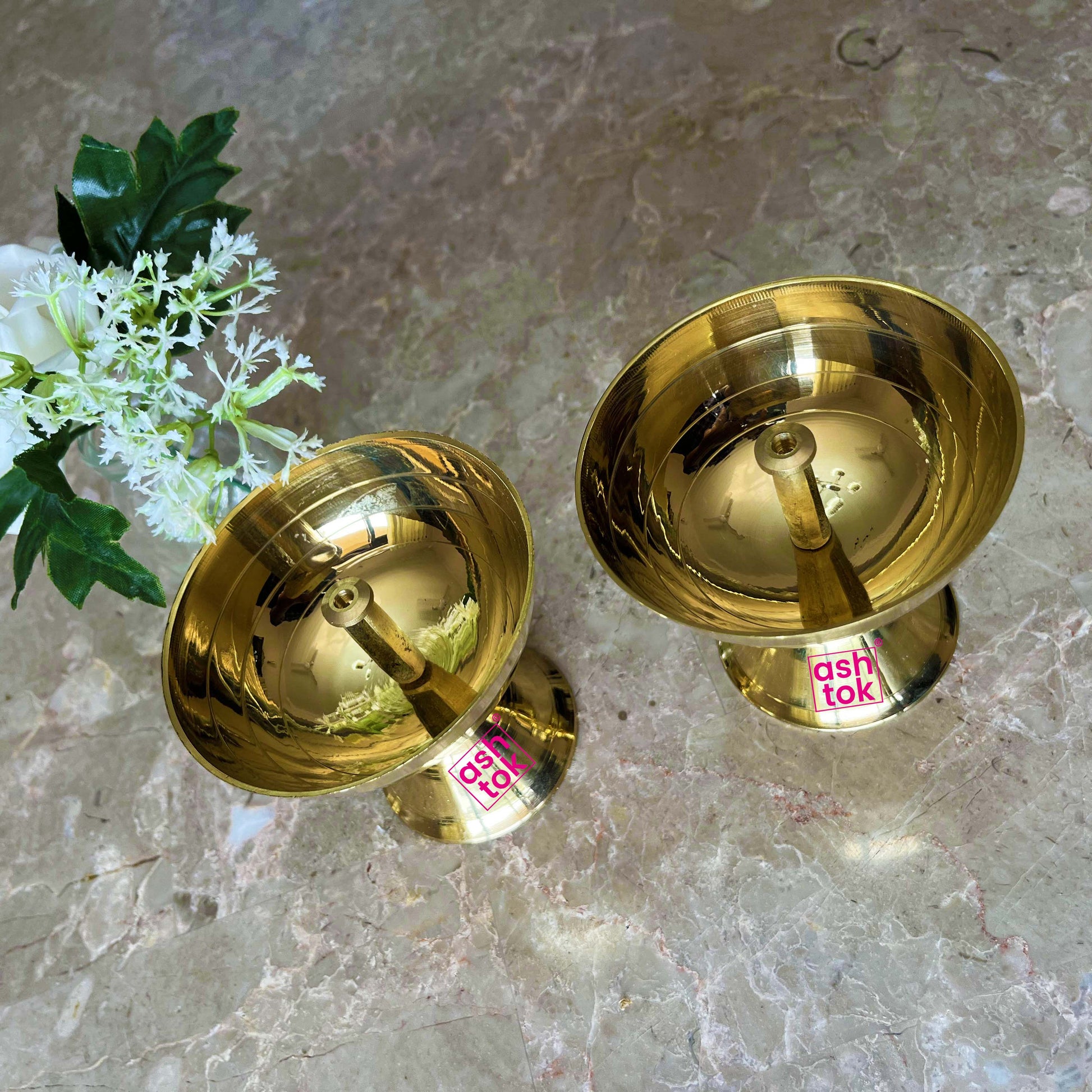 Product Details: Beautifully handcrafted brass Cup Shaped diya or oil lamp deepam. These puja lamps/Diya are made of high-quality brass that is sturdy. This Beautiful and Spiritual Brass Product is Designed Specifically for Home | Office Decoration. A wonderful present for your loved ones. Akhand Diya is associated with spirituality, purity, power, the Light of Goodness, and good fortune. The lighting of Diya signifies the removal of darkness and bad energies from the dwelling. Diya lighting is particularly essential during Diwali since it is celebrated on the new moon day, when there is complete darkness around, thus people light Diyas to eliminate that darkness.