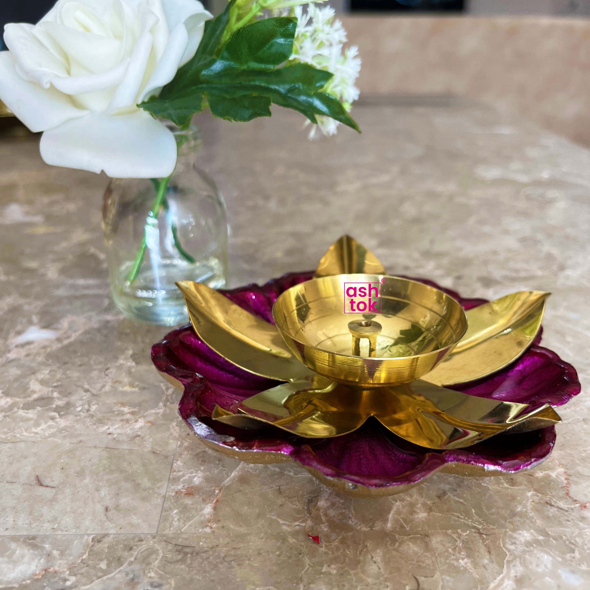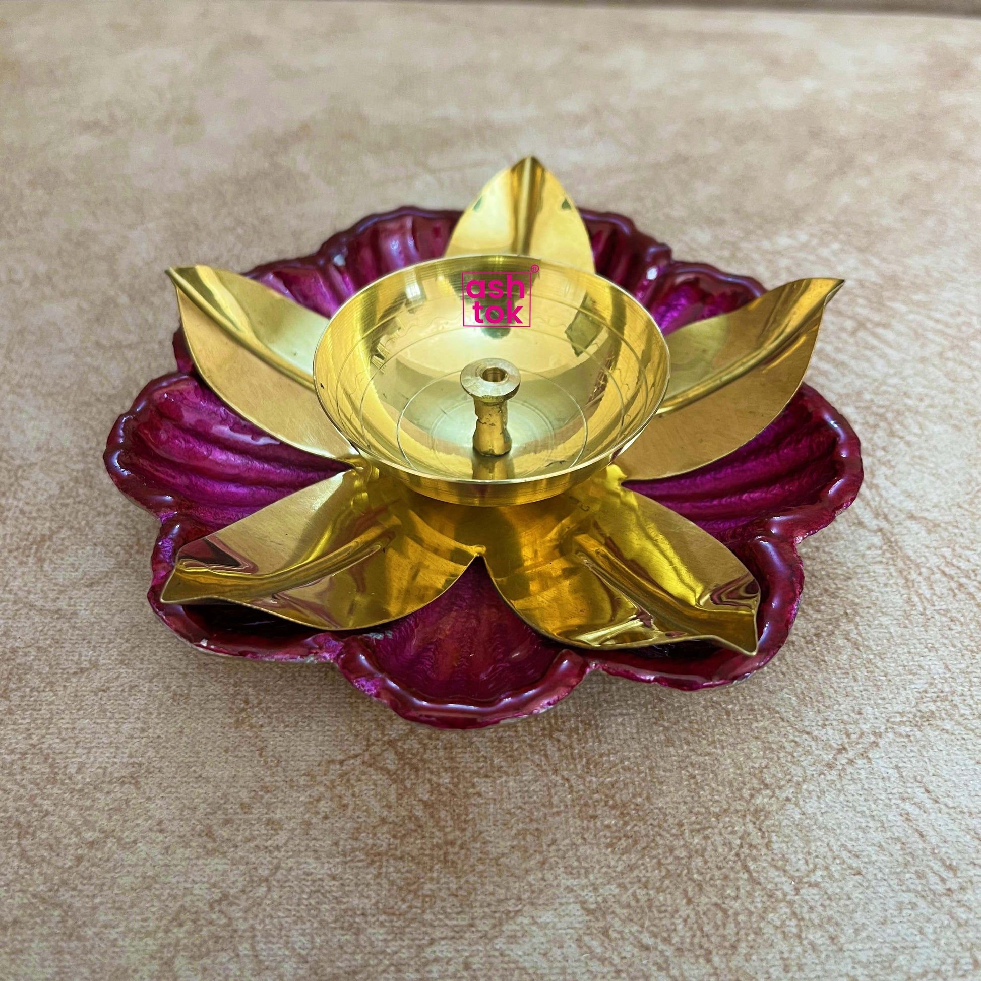 Brass Diya for Puja, Diwali diya Traditional Oil Lamp Diya, Multicolour (Dia 6 Inches)