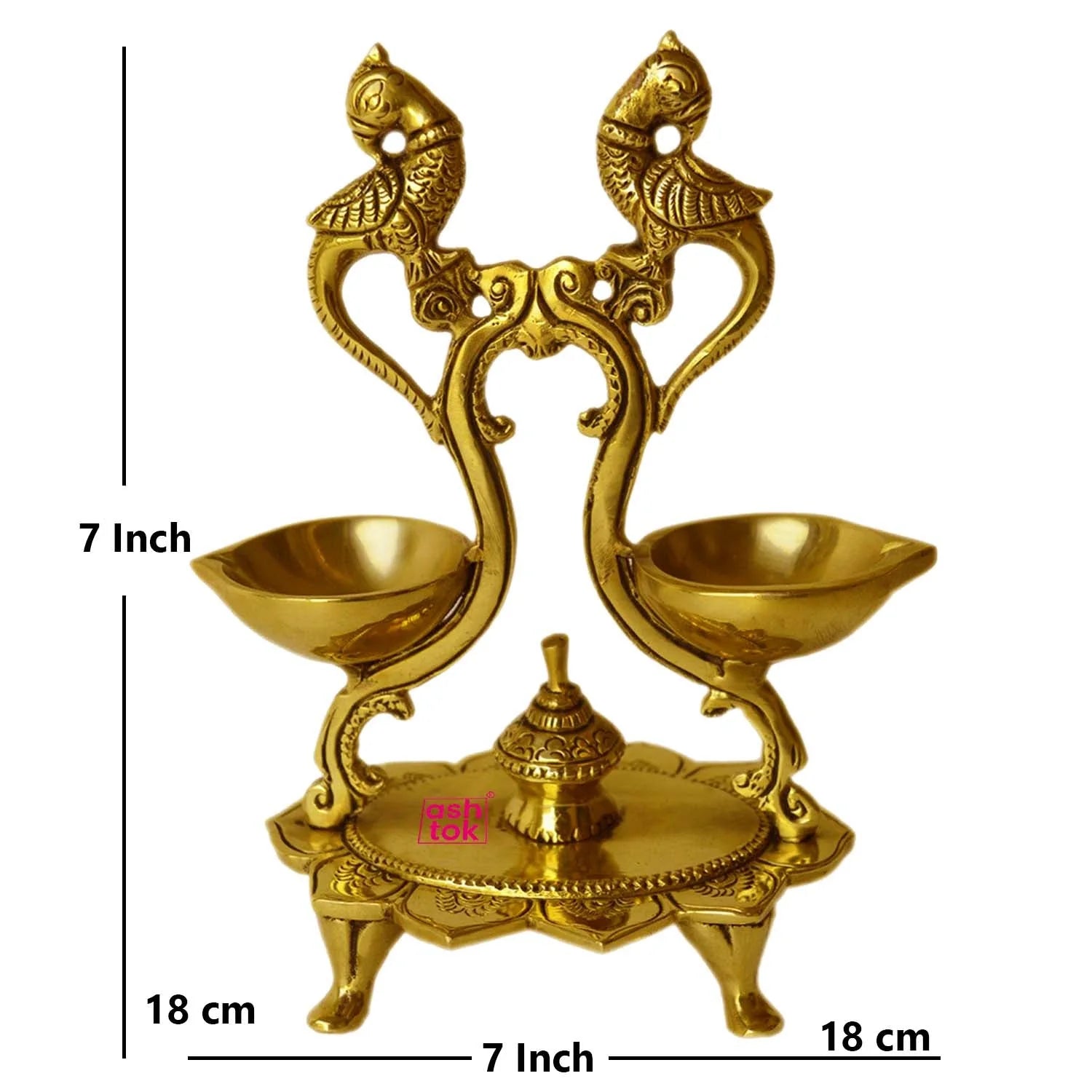 Product Details: Handcrafted pure brass standing diya with an antique finish. Brass peacock standing diya with 2 wick holders and 1 brass stand enhances the diya and provides a gateway-like look. This brass diya depicts two lovely peacocks dancing over the illuminated diyas, which symbolize pleasure and happiness. Vision, Royalty, Spirituality, Awakening, Guidance, Protection, and Watchfulness are all represented by the Brass Peacock. Enlightened Brass Diya represents purity, kindness, good fortune, and power. This lovely Brass peacock standing diya will complement your home décor and is also suitable for celebrations such as Diwali and Navratri. It might also be a unique and meaningful giving idea that your loved ones will appreciate.