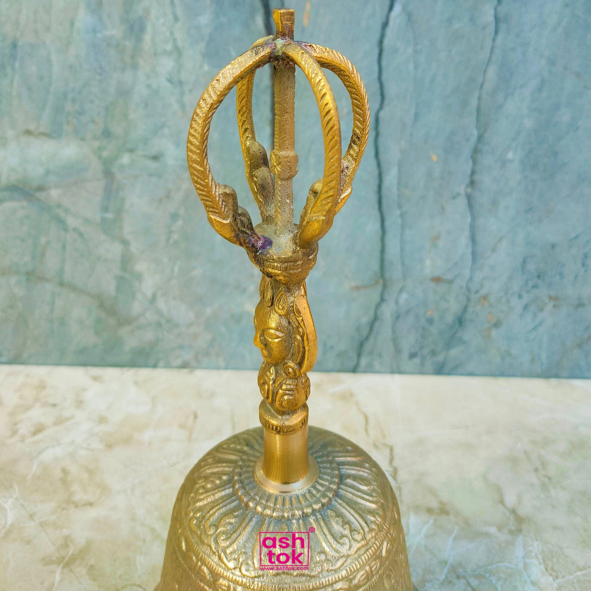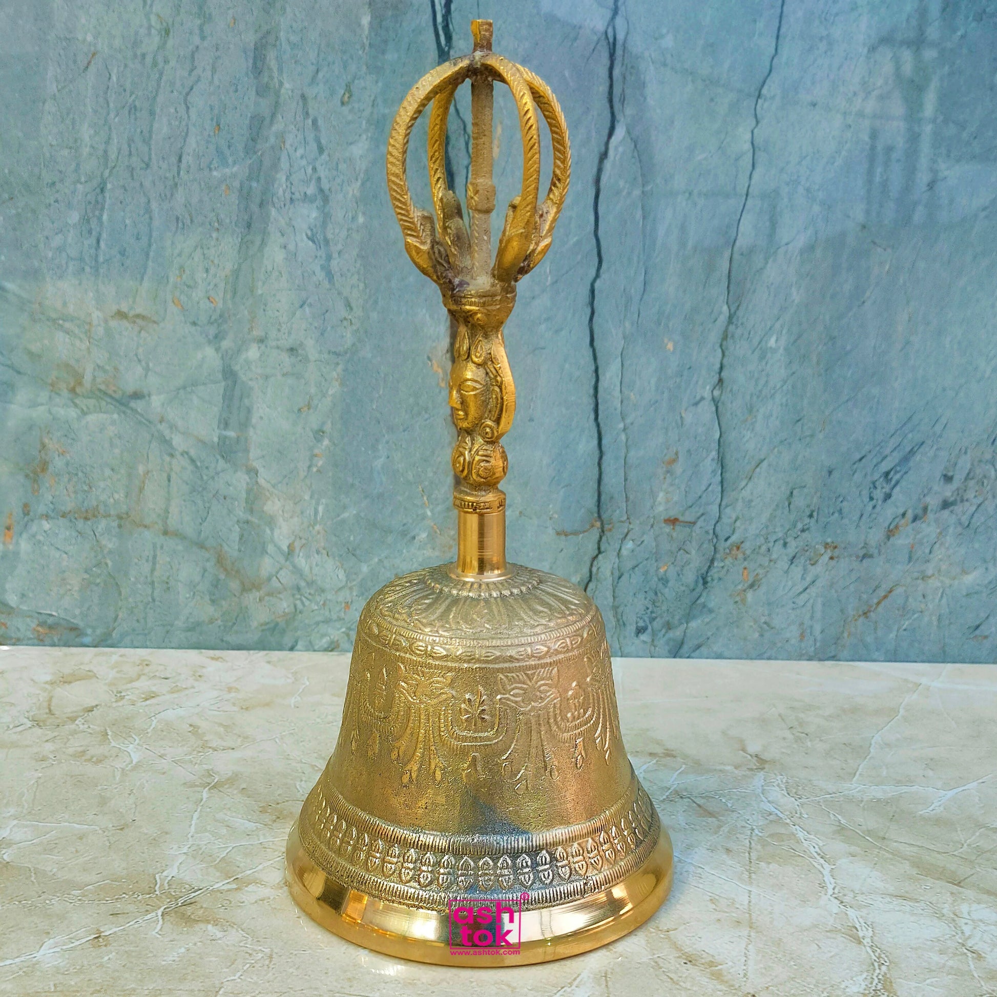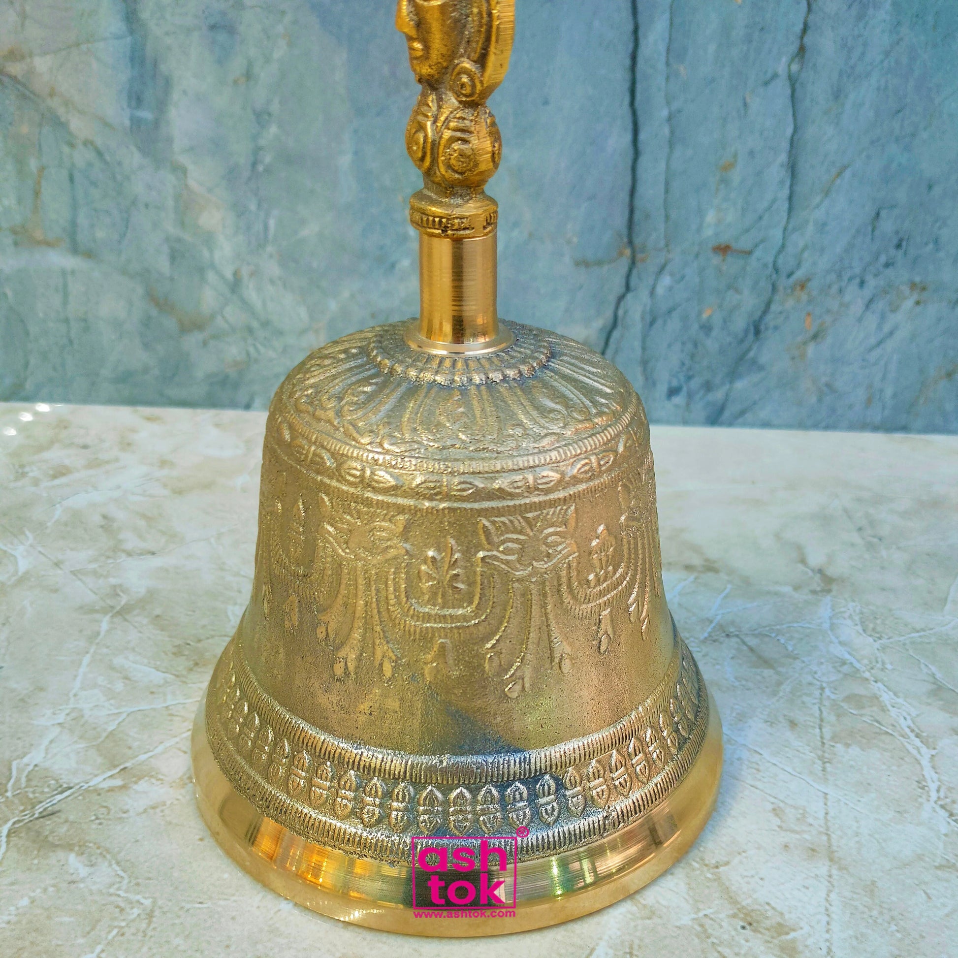 Brass Fancy Hand Bell, Brass Puja Traditional Hand Bell