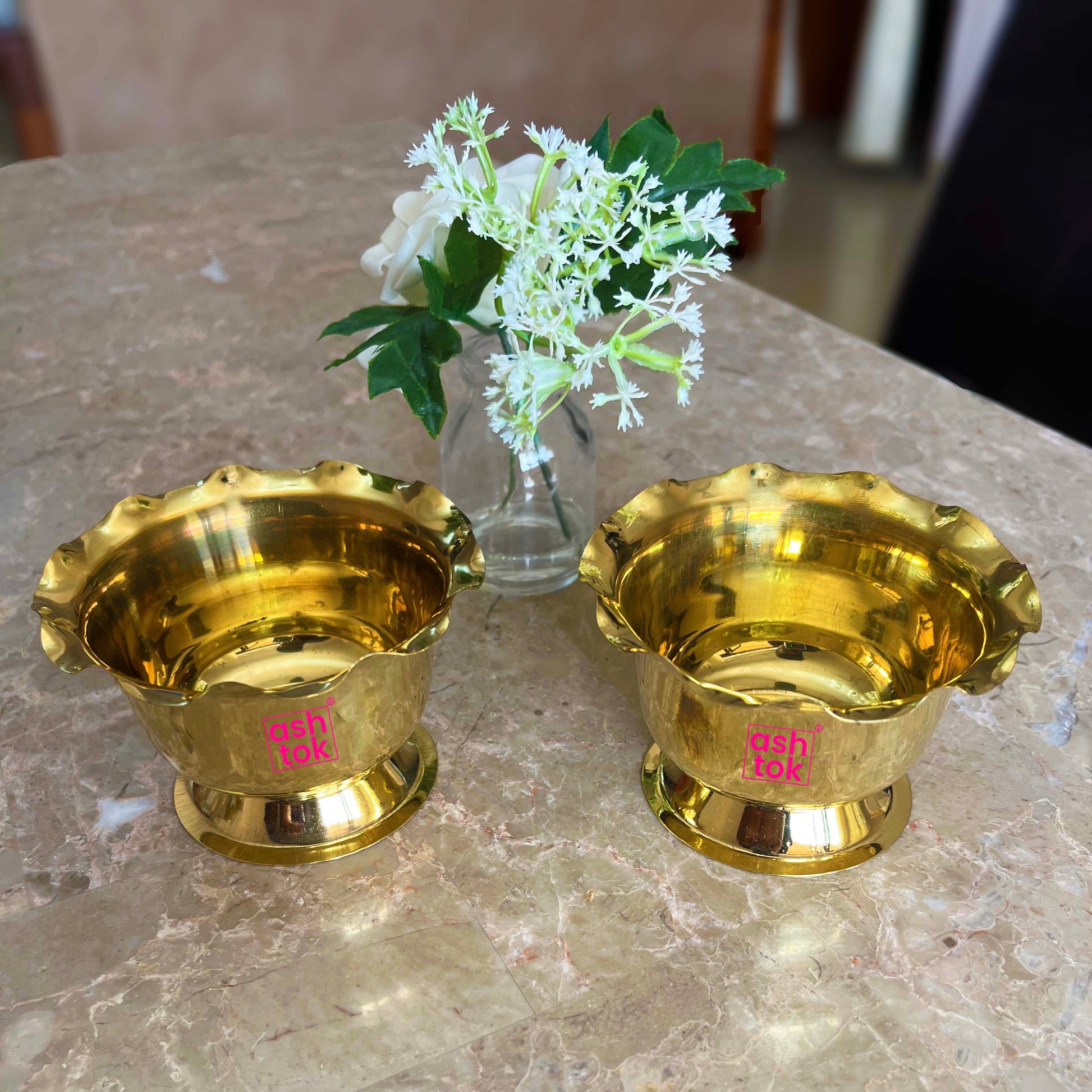 Product Details: Gandham Ginni is made of brass and has curved sides as well as a pedestal base to hold the bowl. Ideal for keeping sandalwood paste, which is used to introduce guests by putting sandalwood on their faces. It is also used to keep sandalwood, sindoor, and haldi in Pooja Mandirs (in-house temples). It comes in a variety of sizes dependent on the amount of space it can store. This item is also known as a Sandalwood paste bowl. This product has a glossy appearance, making it ideal for gifting on any occasion or as a return present.