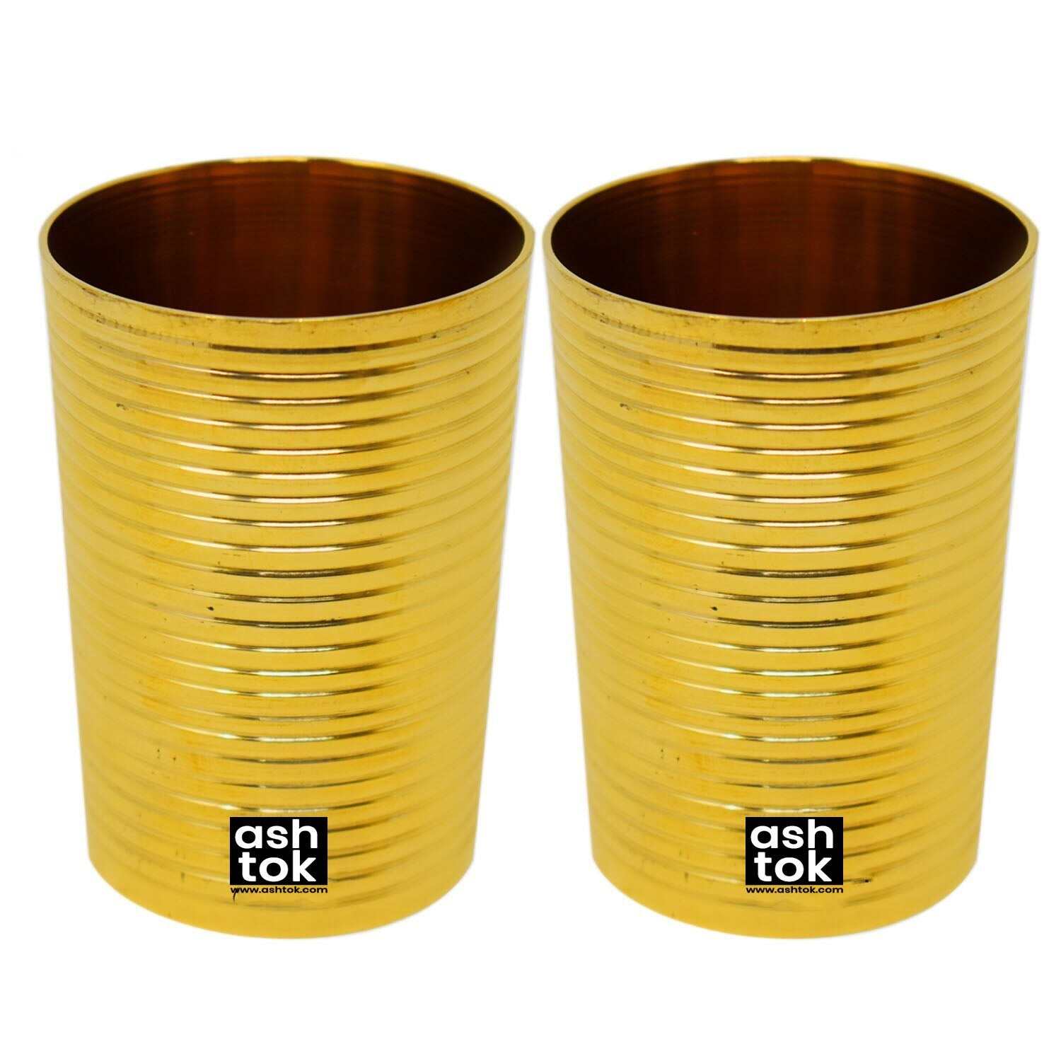 Brass Glass, Golden Water Drinkware Glass, Capacity 250 ml (Set of 2)