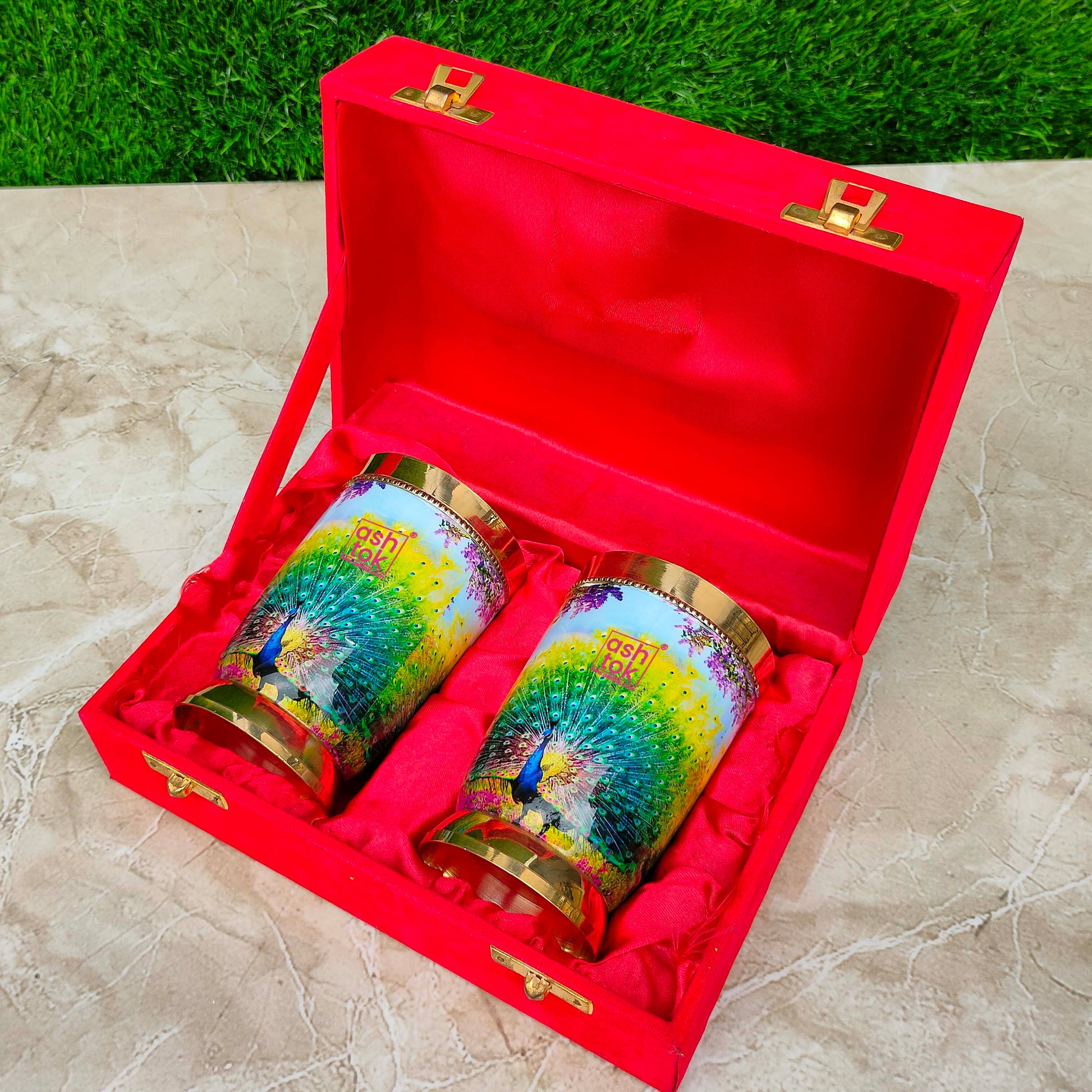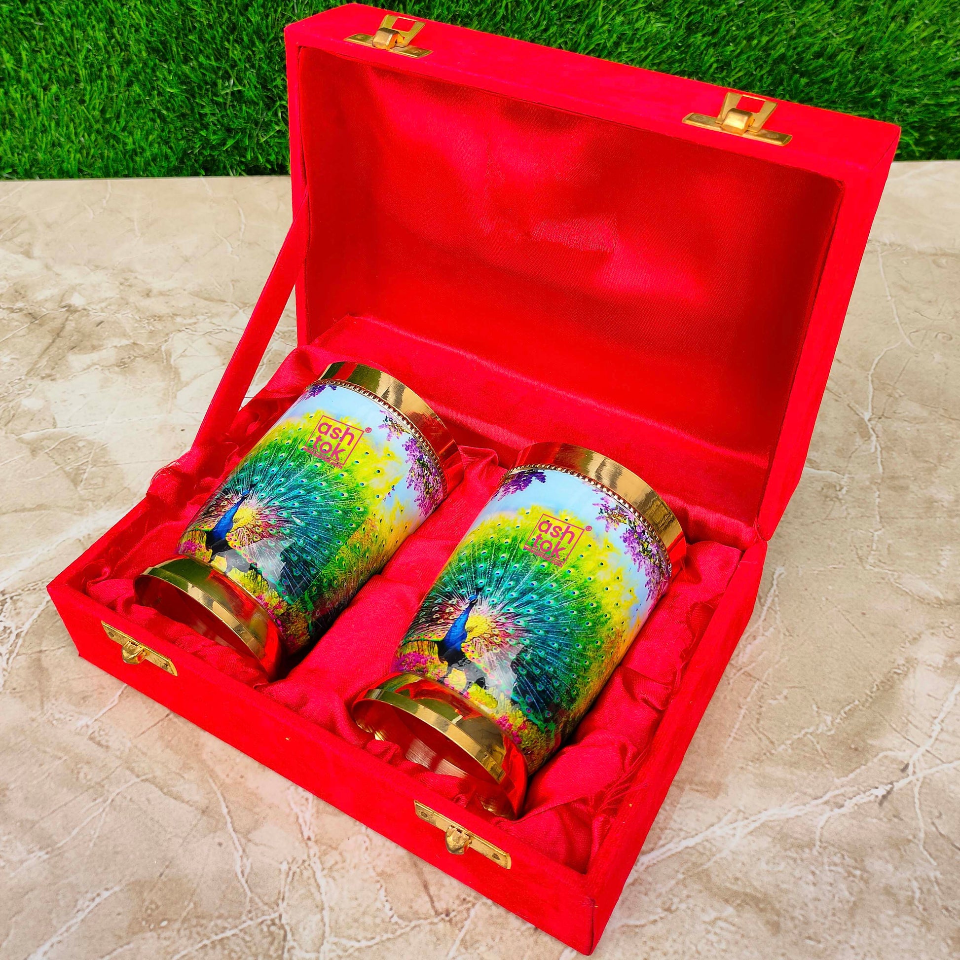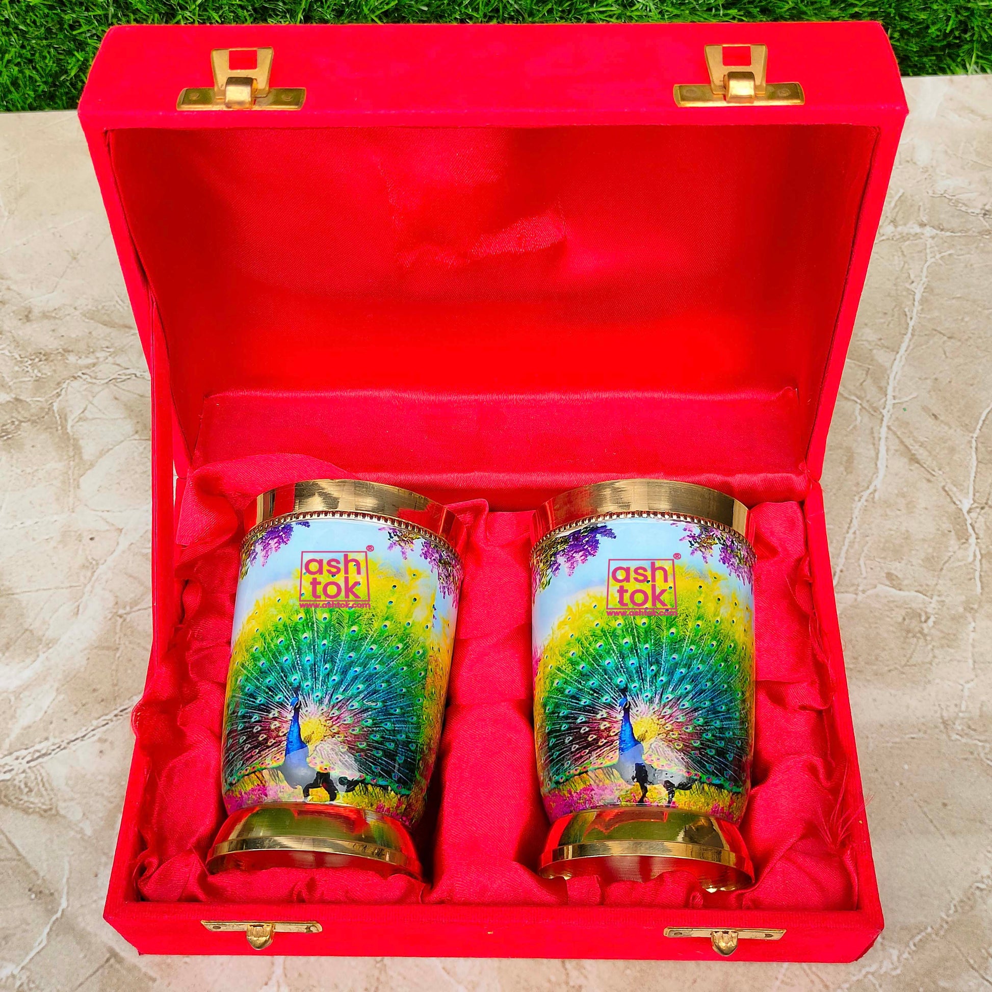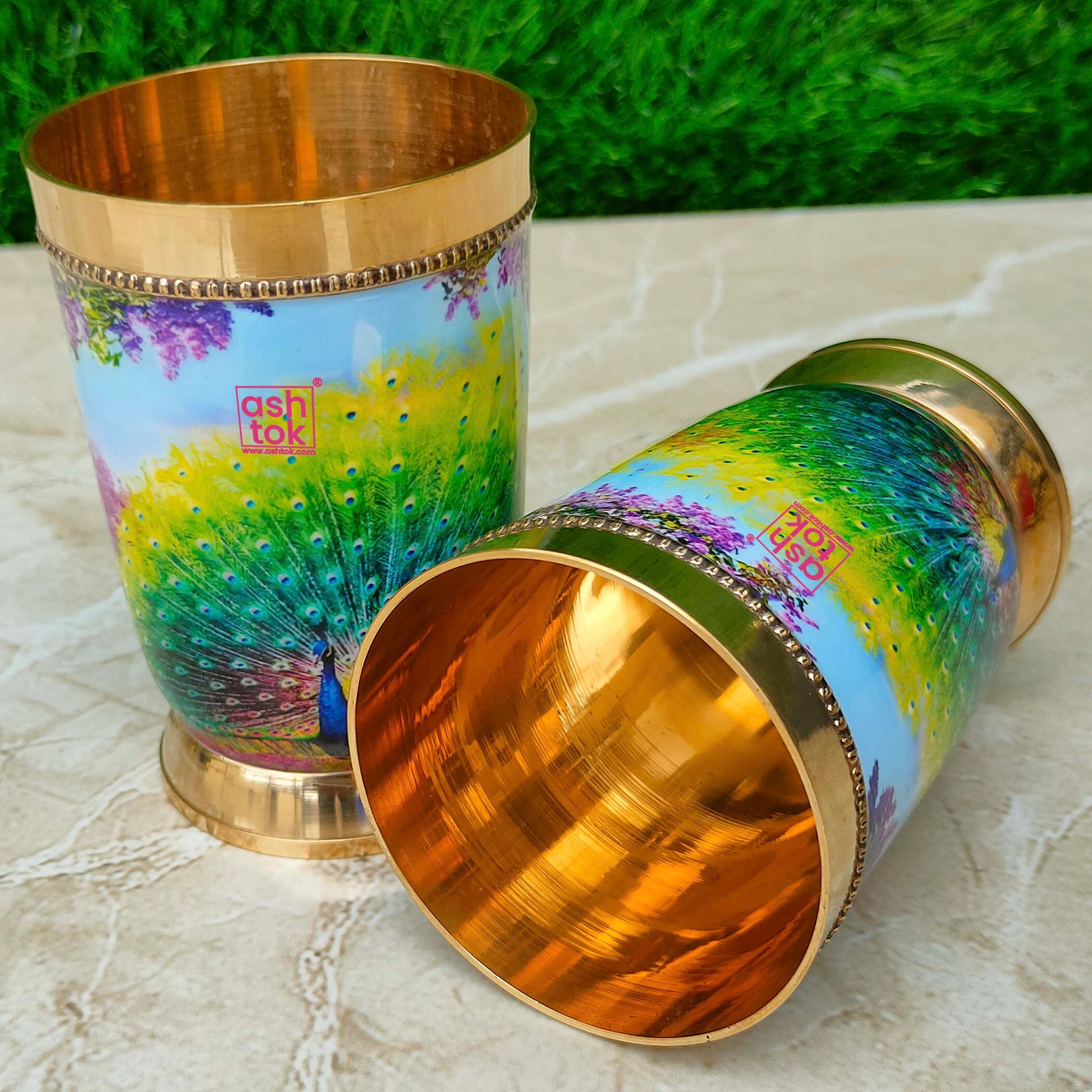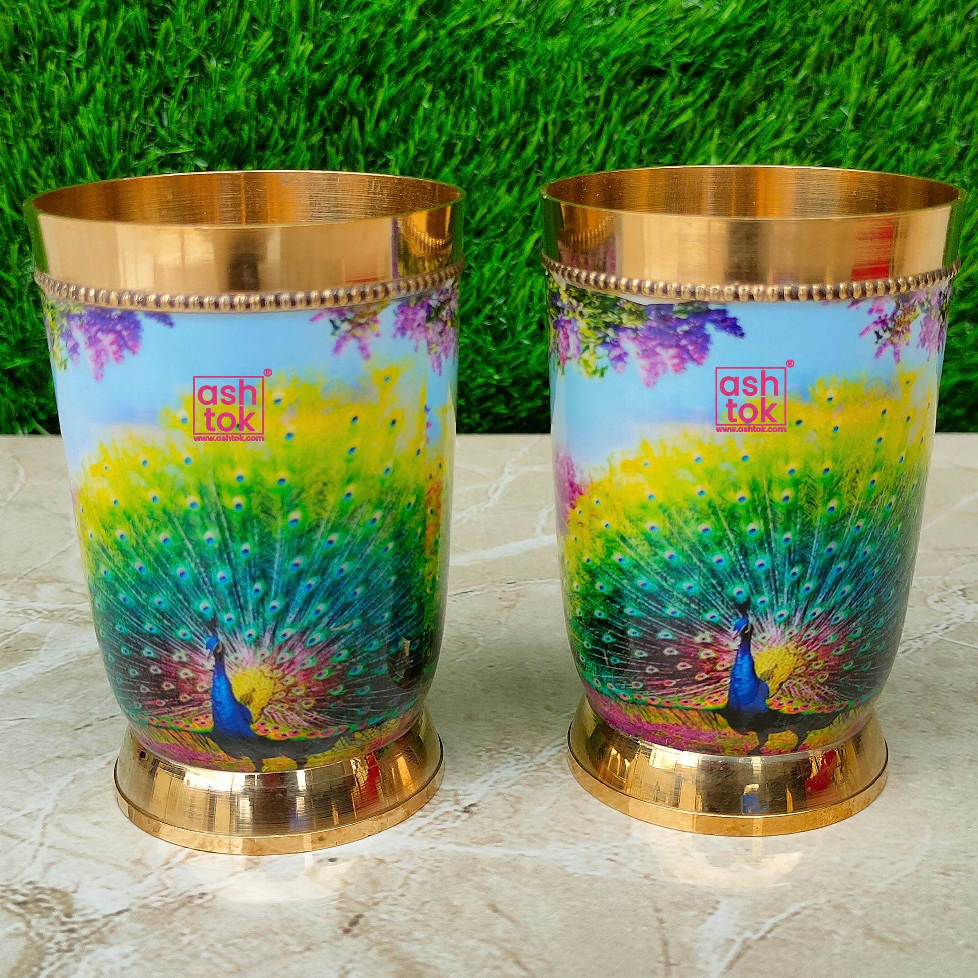 Best Quality Pure Brass Glasses, Peacock Printed Design Brass Water Glass. Designed by Ashtok. We provide the most affordable prices and free shipping throughout India.