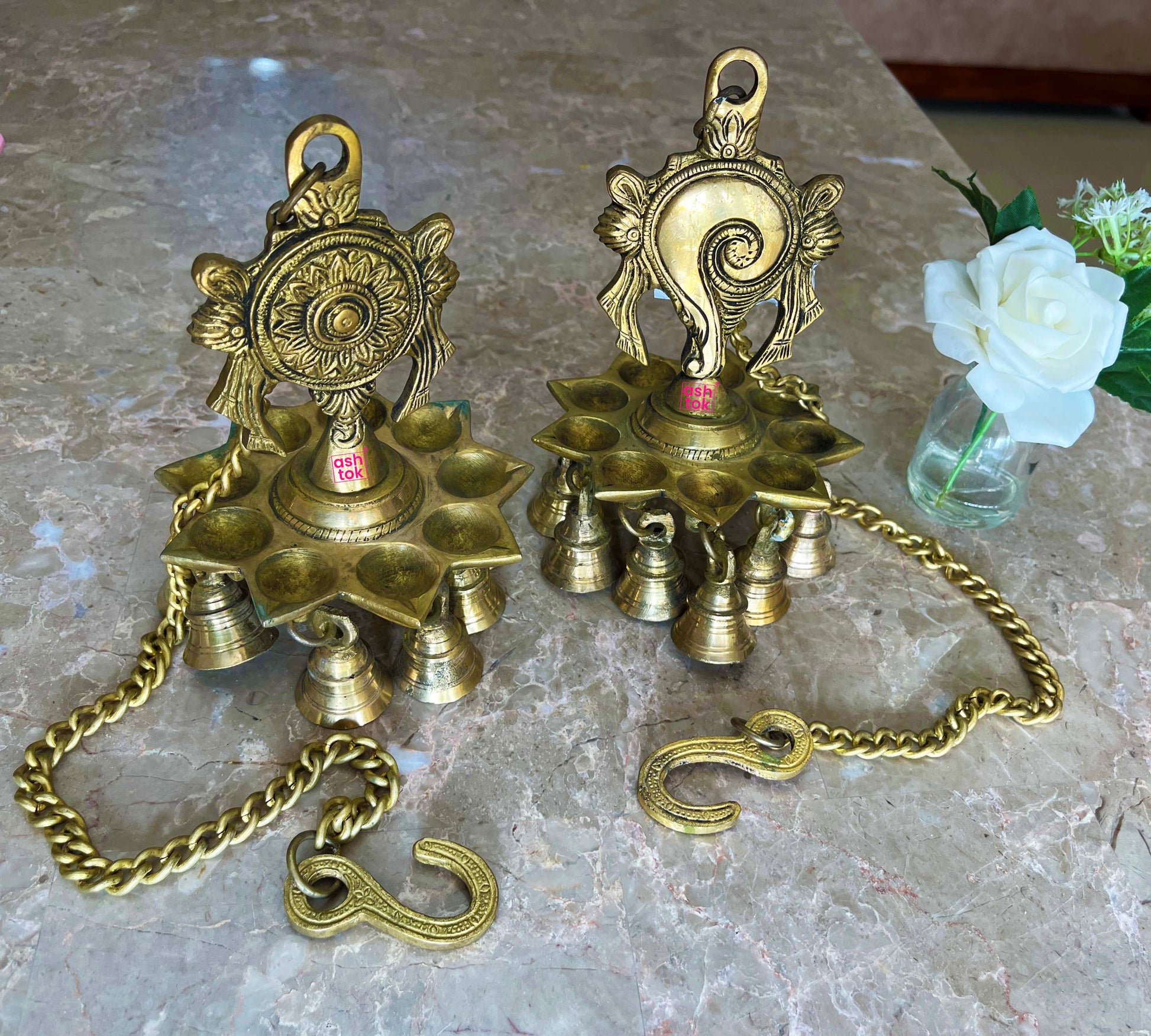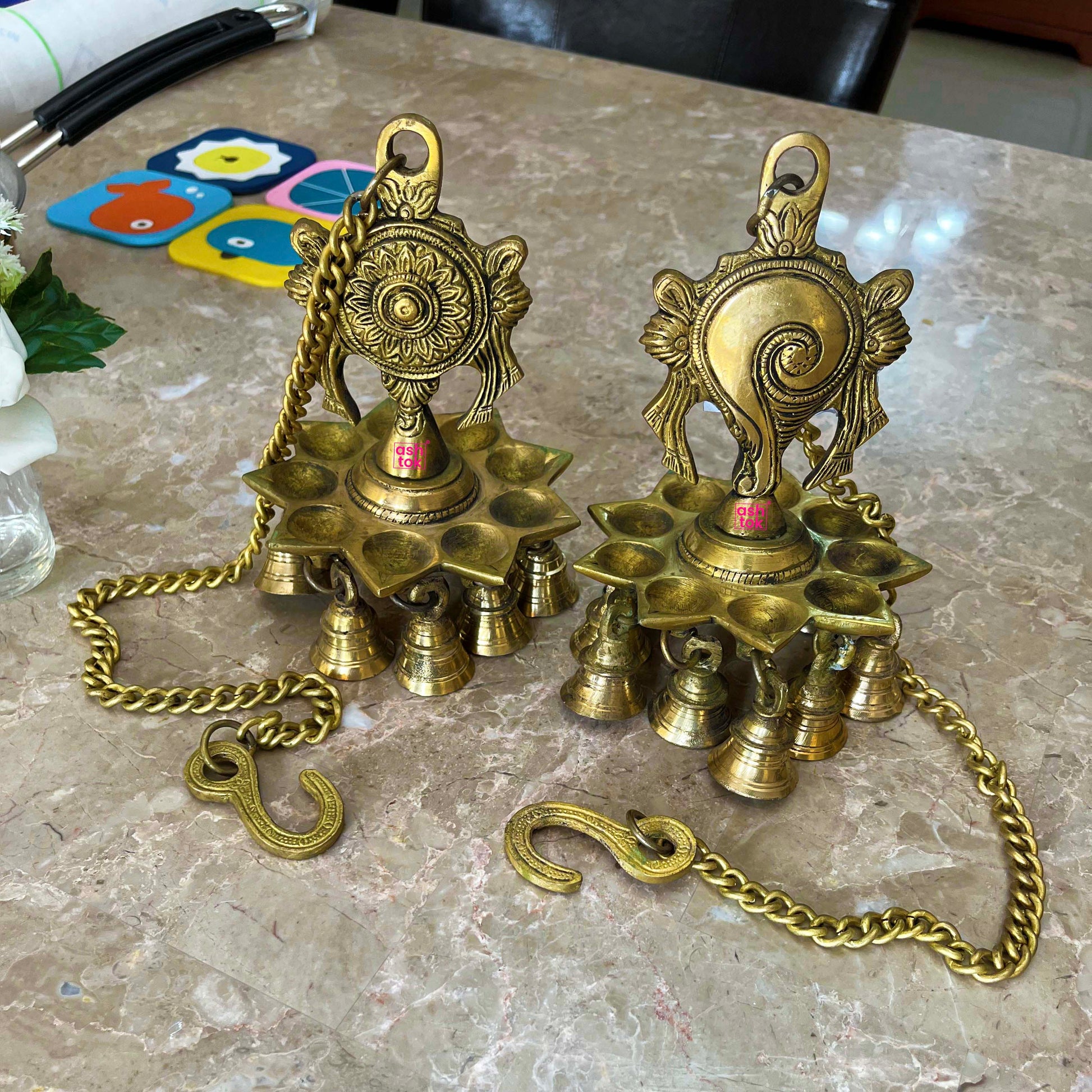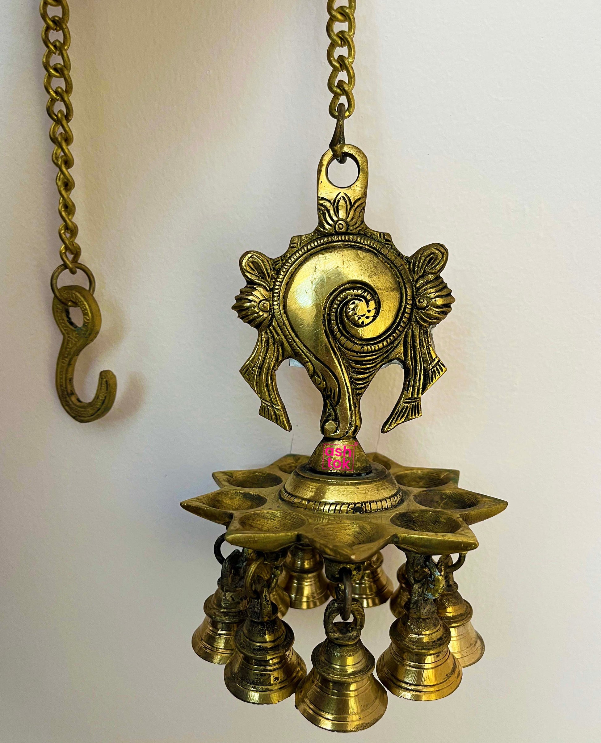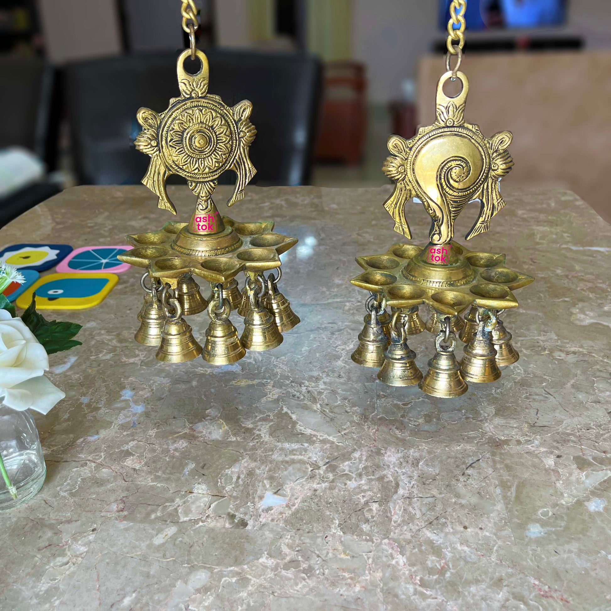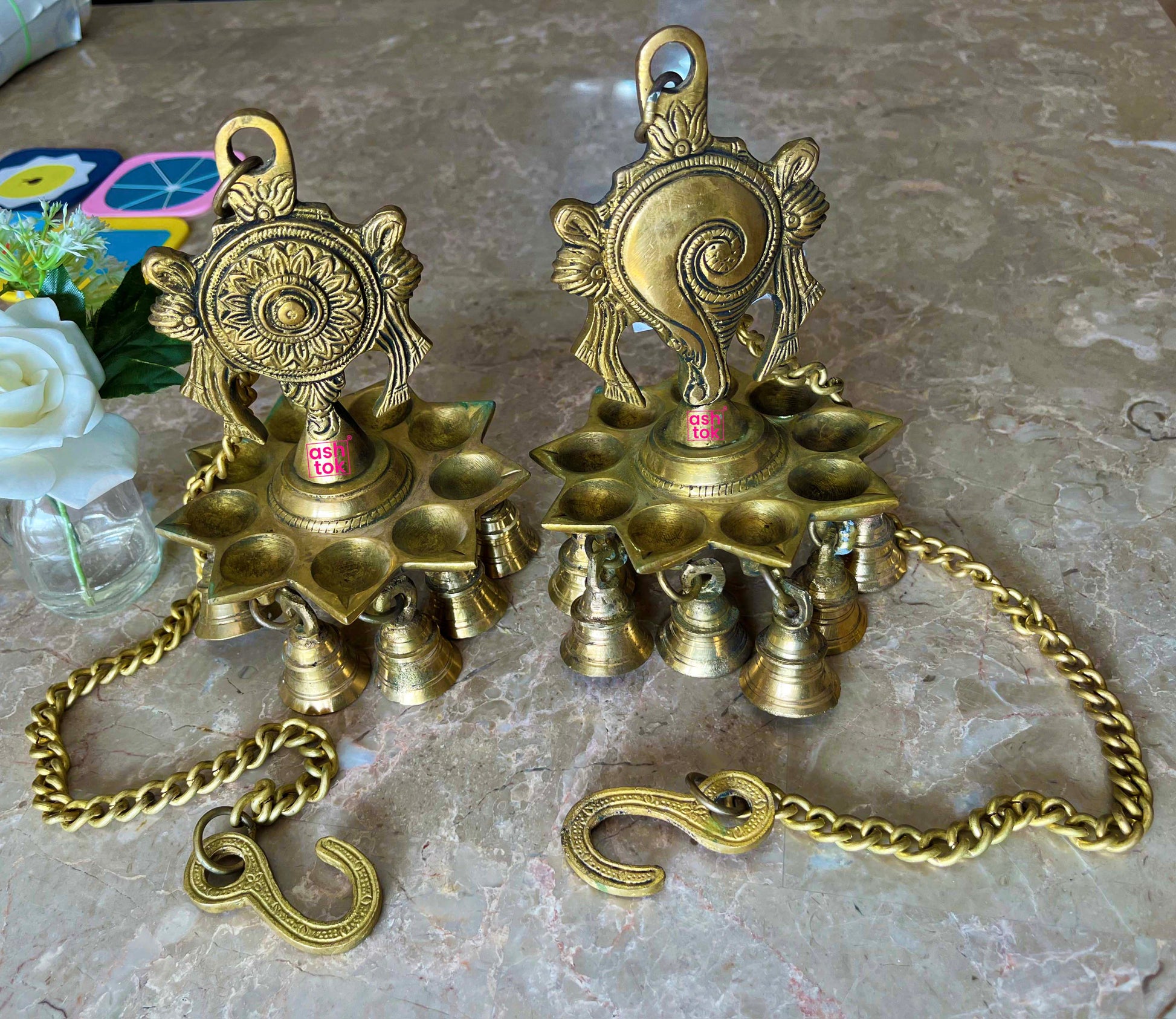 Brass Hanging Diya, BRASS DIYA Set WITH CHAIN , Sangu symboled, Diya home decoration