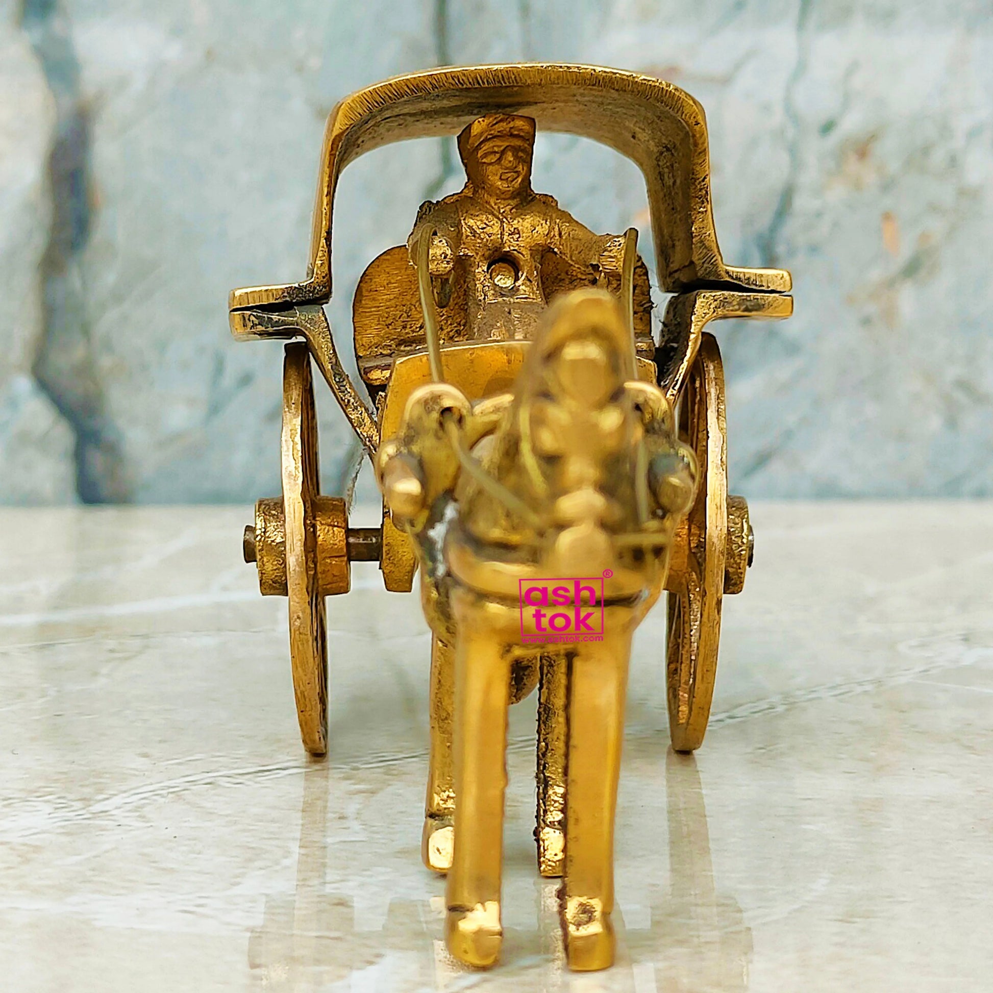 Ashtok designed Handcrafted Horse cart is decorated with elaborate metalwork and brass accessories, displaying the attention to detail that also goes into the metal decoration. These minute aspects show off the artistry and attention to detail that went into developing this masterpiece in addition to improving its overall beauty. The horse cart is elevated to the status of a work of utilitarian art by the harmonious balance created by the combination of wood and metal materials. With the classic style of the past reflected in the timeless allure of our Antique Finish Horse Cart, you may elevate your surroundings.