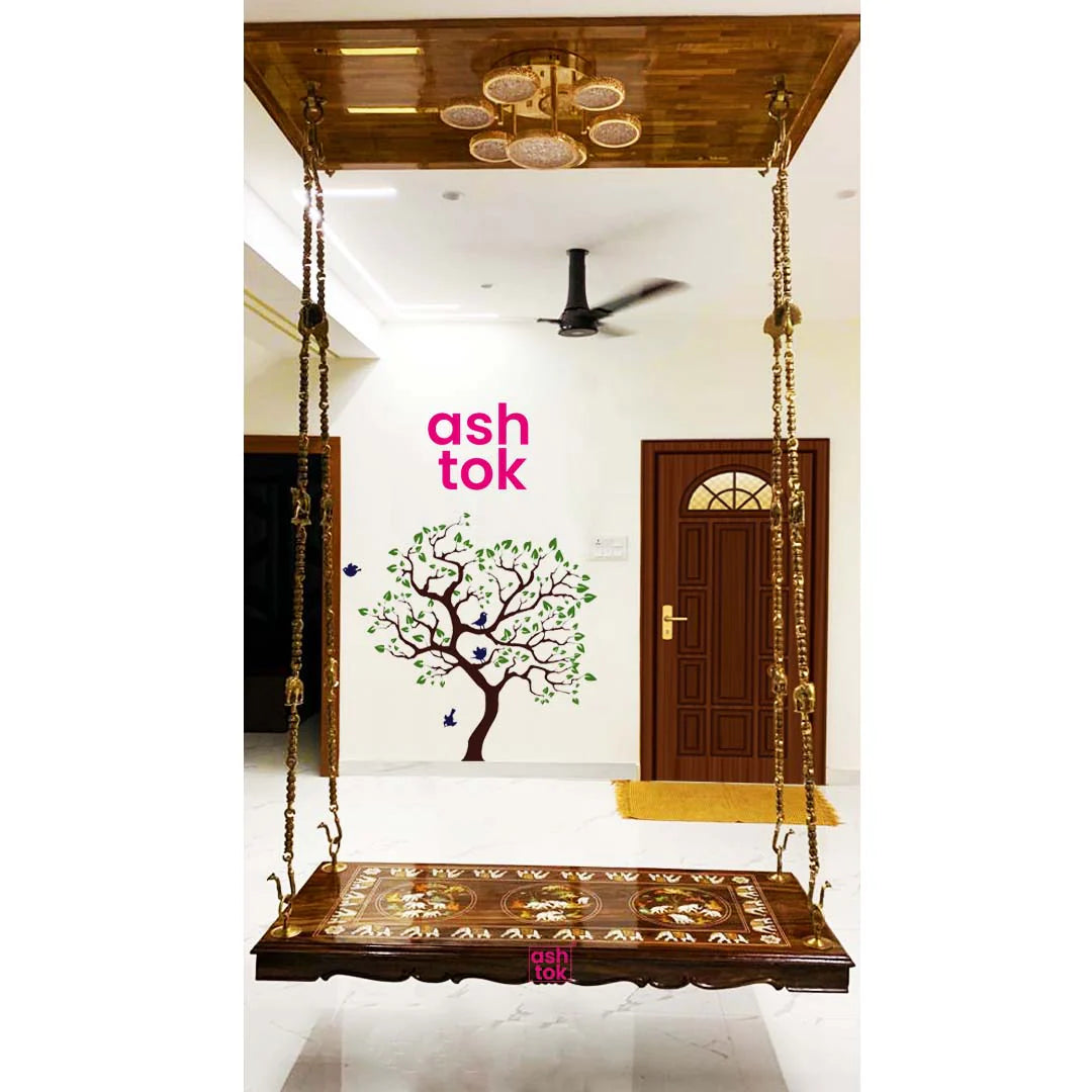 Perfectly and beautifully decorate your home or garden with a hanging bench or wooden chair to sit on. A wonderful addition to your home's external decor, and your landscape will appear even better. Brass is used for strength and longevity, ensuring many years of enjoyment. You may use it as home/office/living room décor or as an outstanding lucky present item for your loved ones because it is handcrafted by our creative artisans. Antique patterns may be seen on Ashtok Brass products. The item is really robust, and attractive, and would make an excellent addition to your Home Decor.