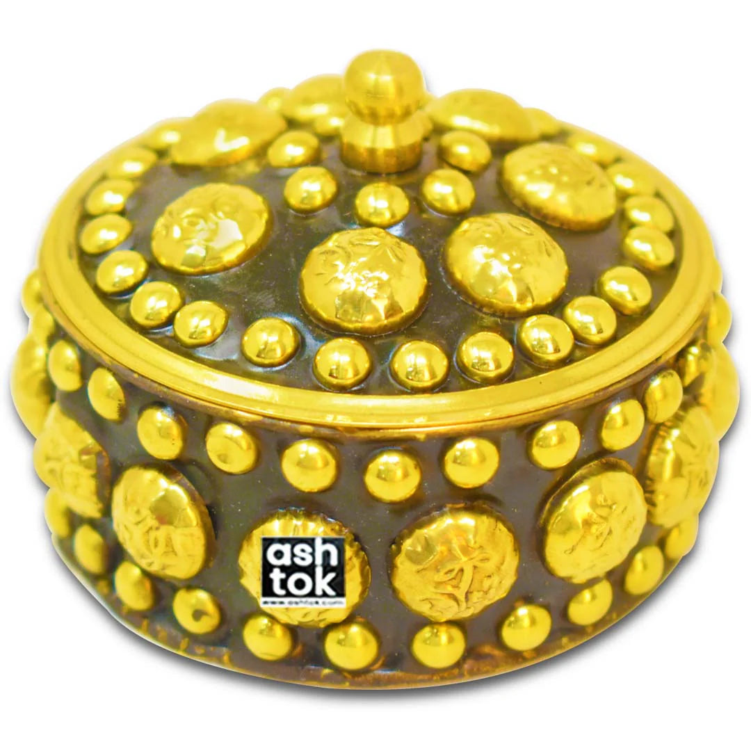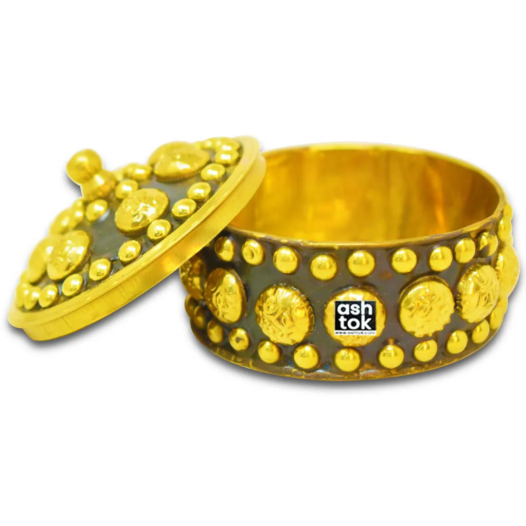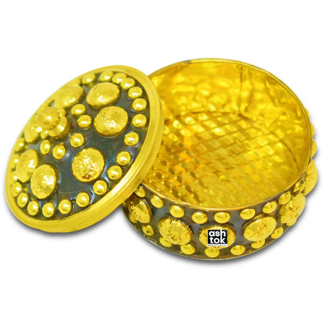 Brass Vermilion/Sindoor box. Dotted Design Kumkum boxes for special occasions: