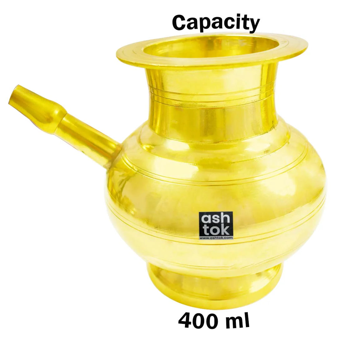 Product Details: This Lota was specially designed for the popular Indian festival "Karva Chauth." The festival has various unique characteristics. Unlike other lotas, it features a nozzle for pooja and festival celebrations. It has pedestal support underneath it for convenient placement of a puja plate. Brass is a metal that is very resistant to corrosion and will not corrode. This makes it extremely long-lasting.