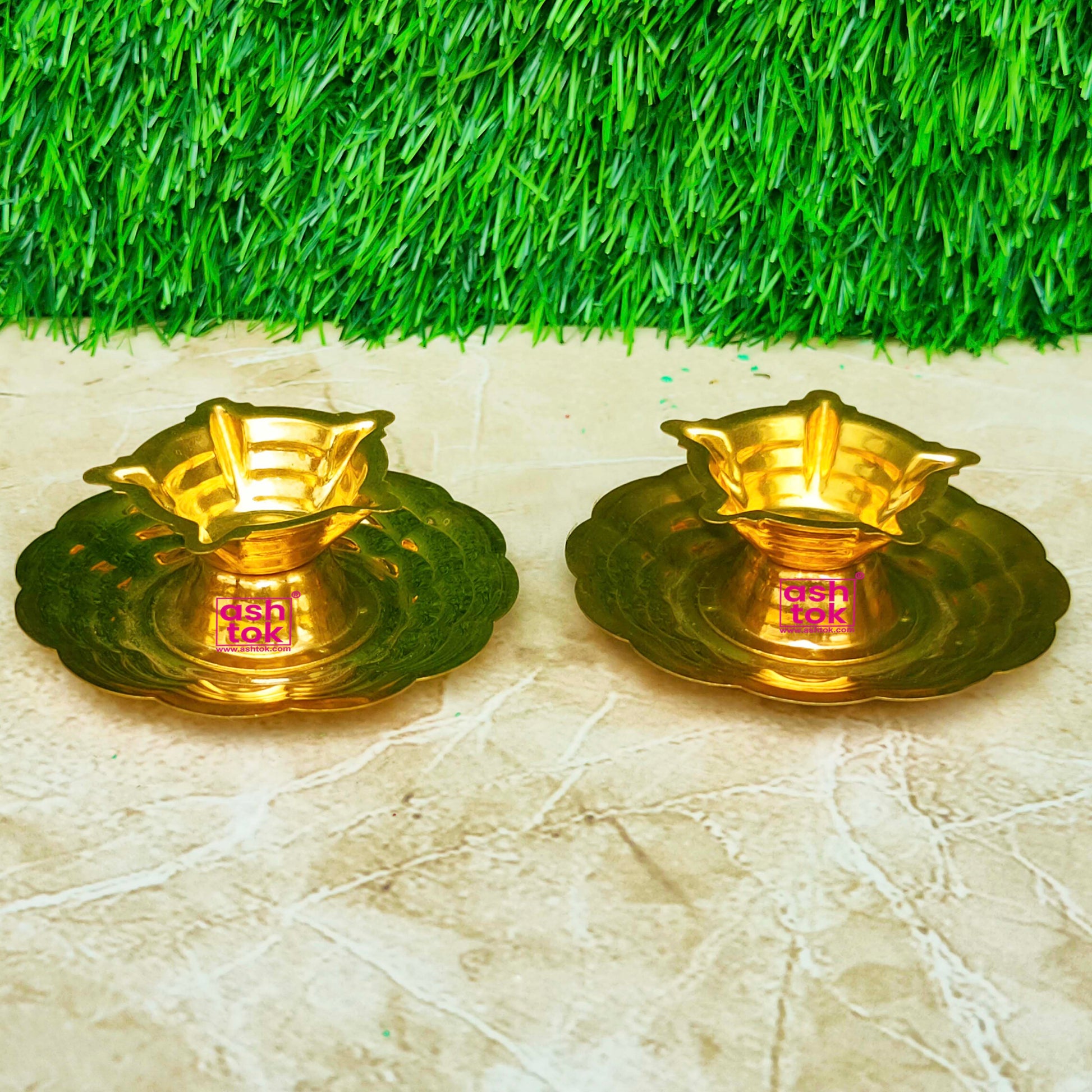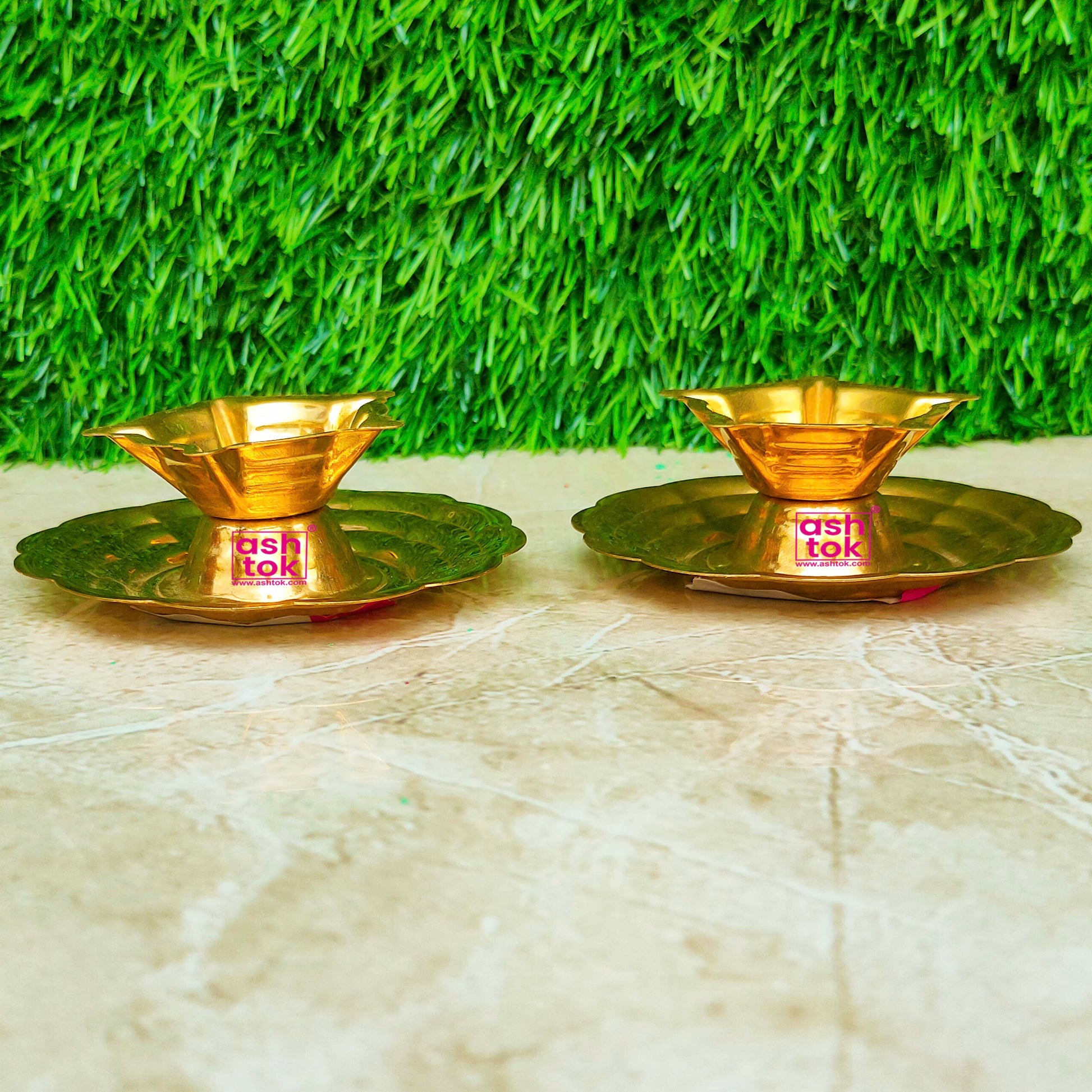 Craftsmanship Beyond Compare: Ashtok designed brass diya is a testament to the artistry of skilled craftsmen. Meticulously handcrafted, it showcases intricate designs and delicate engravings that pay homage to centuries-old Indian craftsmanship. The warm, golden hue of brass adds an air of opulence to any setting, making it a striking decorative piece even when not in use.