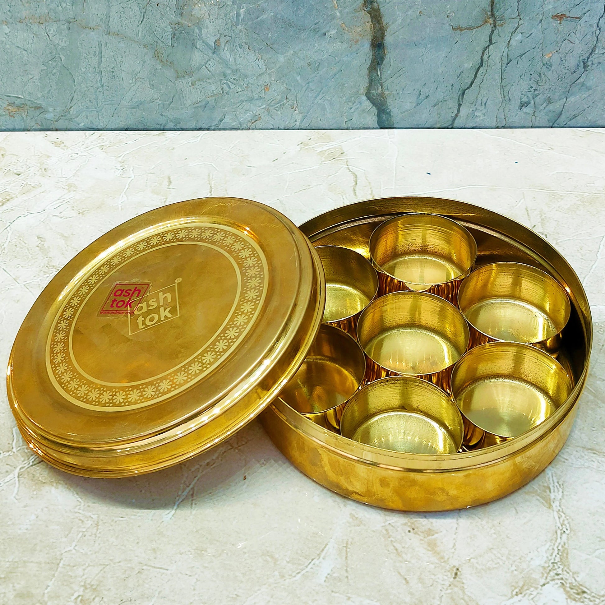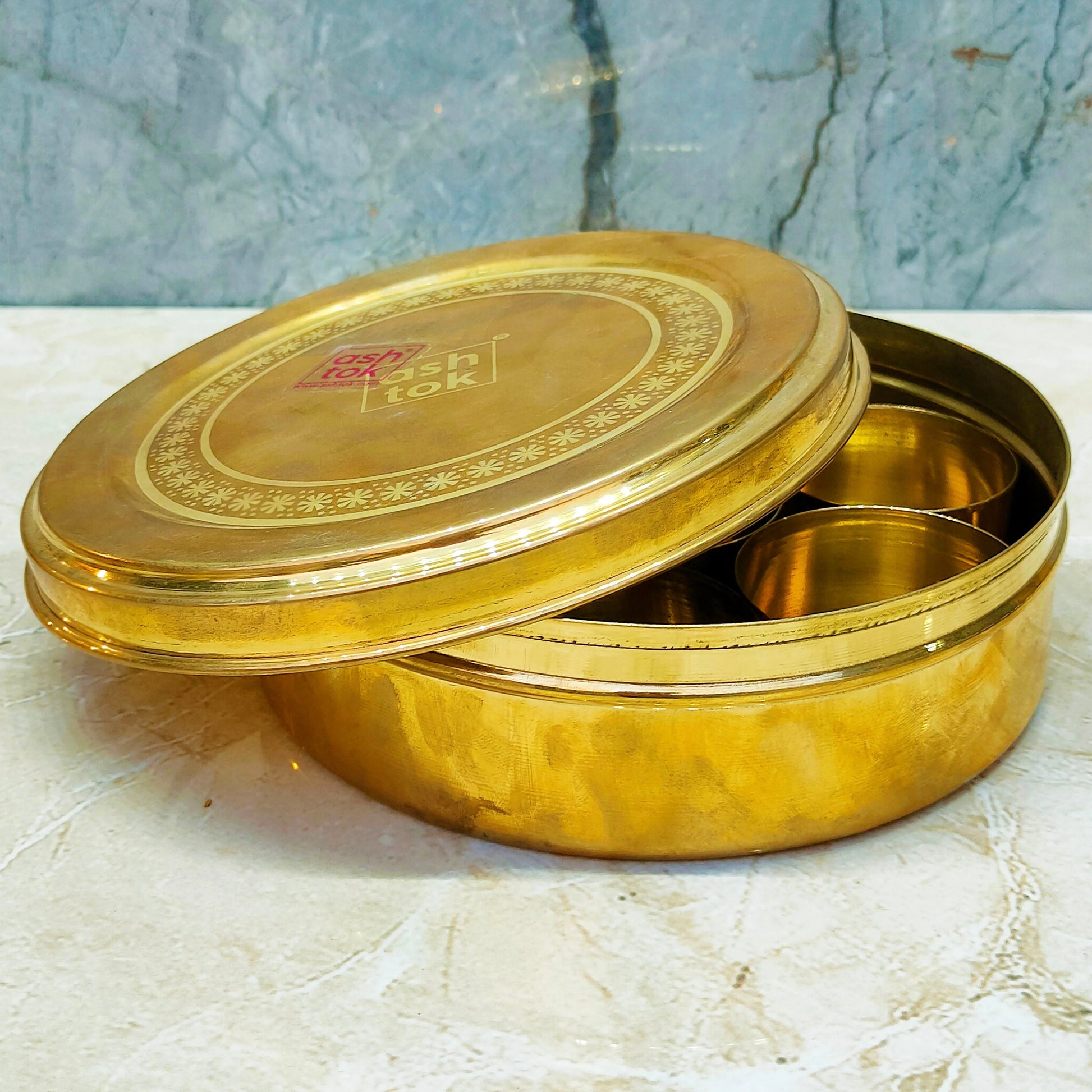 Best Quality Pure Brass Masala Box Designed by Ashtok. We provide the most affordable prices and free shipping throughout India.